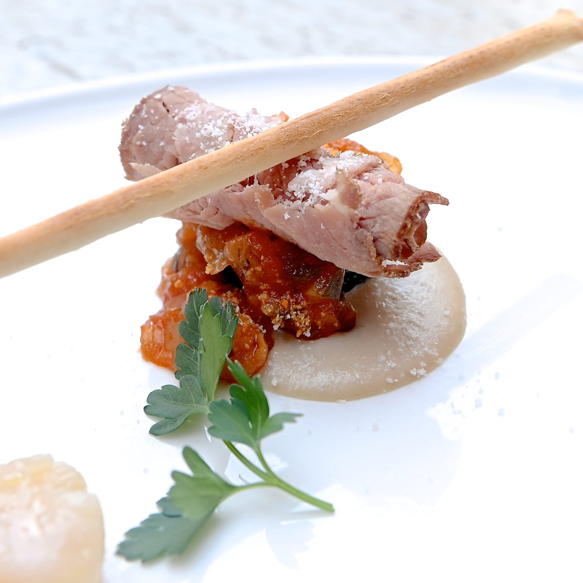 ローストビーフのトンナートソース(イタリア風のツナとマヨネーズのソース)、ラタトゥイユ。