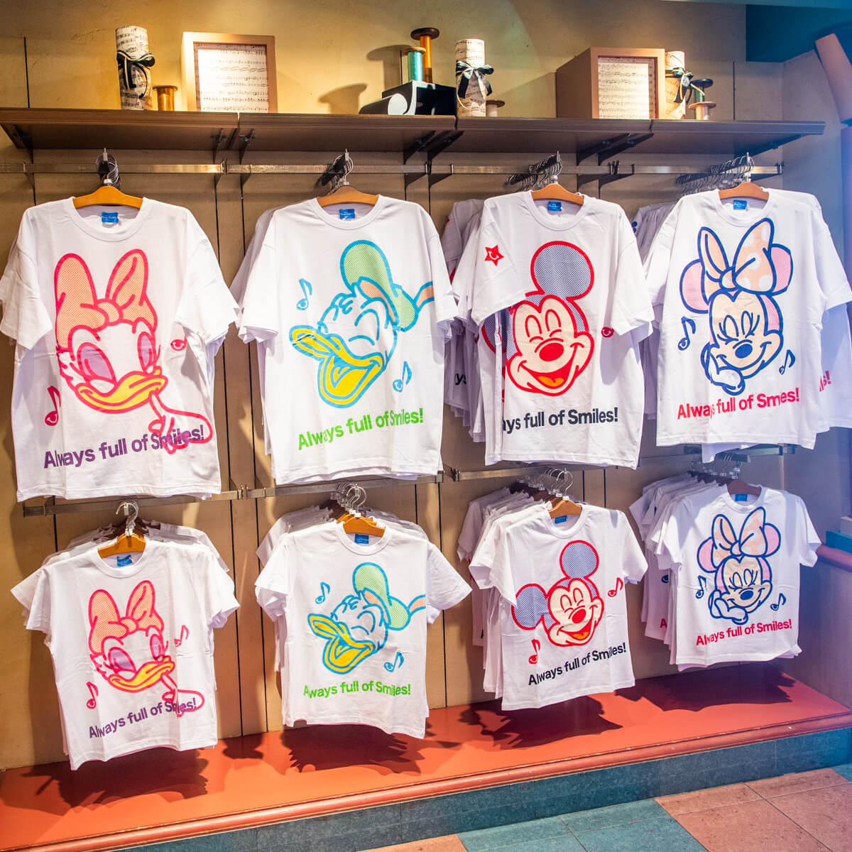 東京ディズニーランド、東京ディズニーシーで販売されている人気の定番ファッションアイテム、Tシャツ。