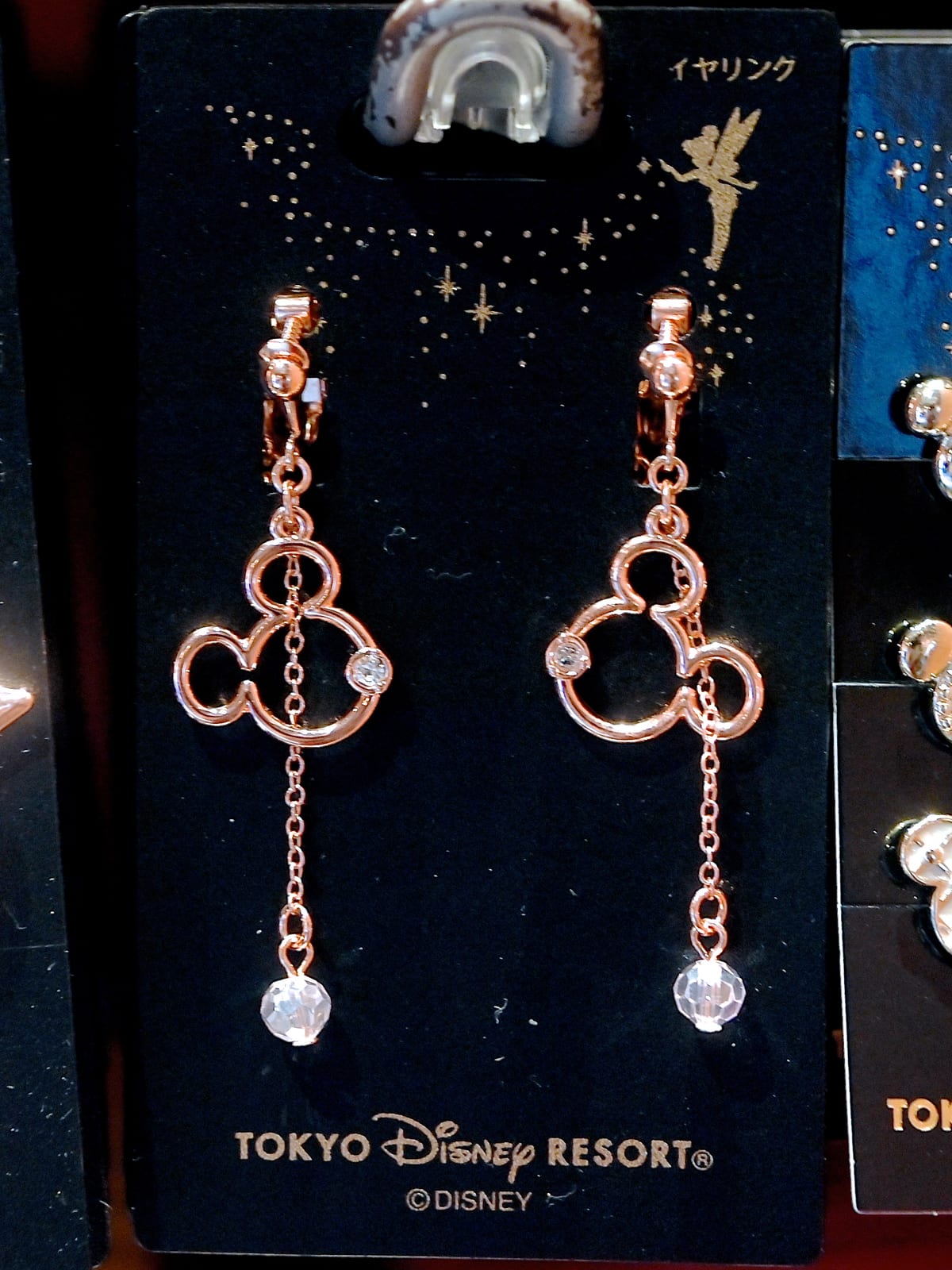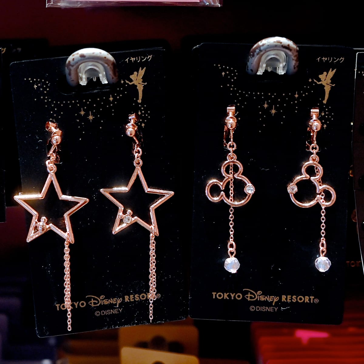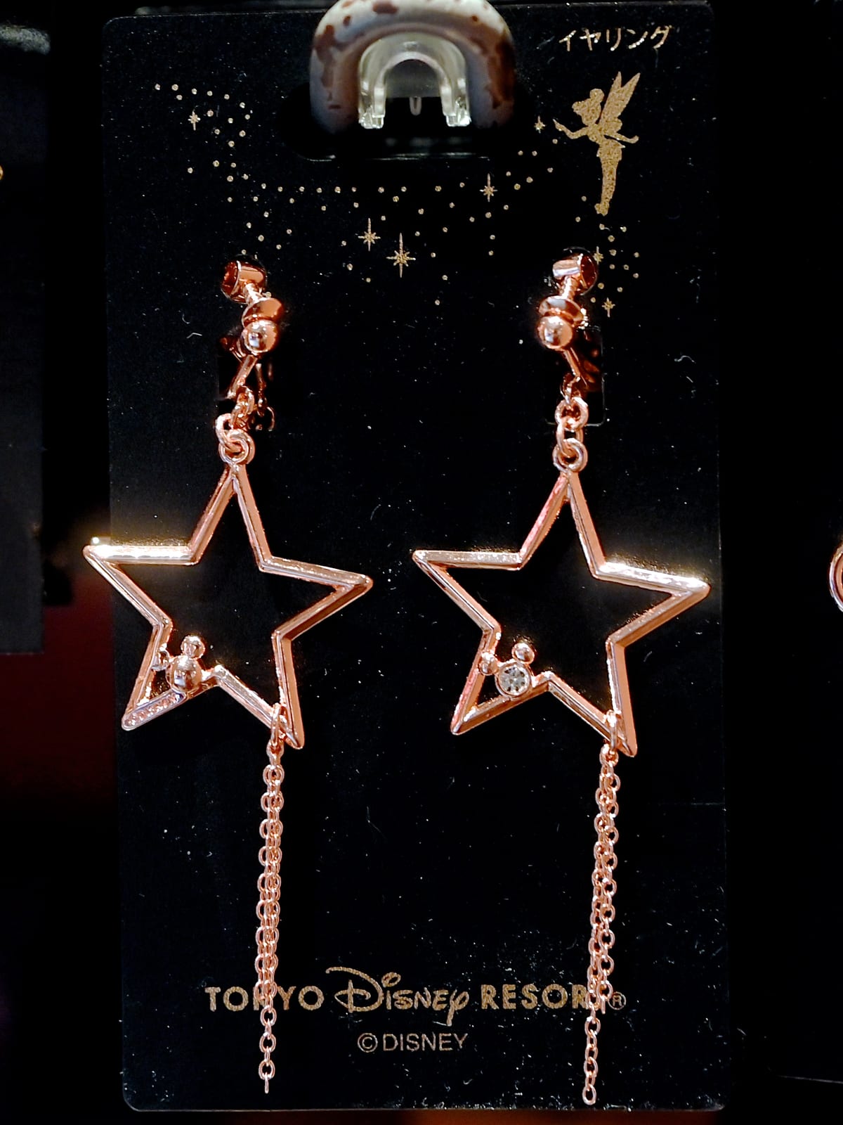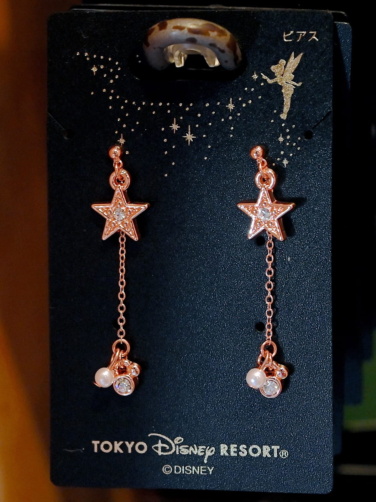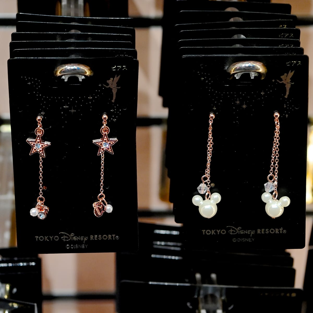 新作は『ピーター・パン』(1953)に登場する金の粉をまきながら宙を舞う美しい妖精「ティンカー・ベル」がデザインされた台紙付きのイヤリング2種とピアス2種です。