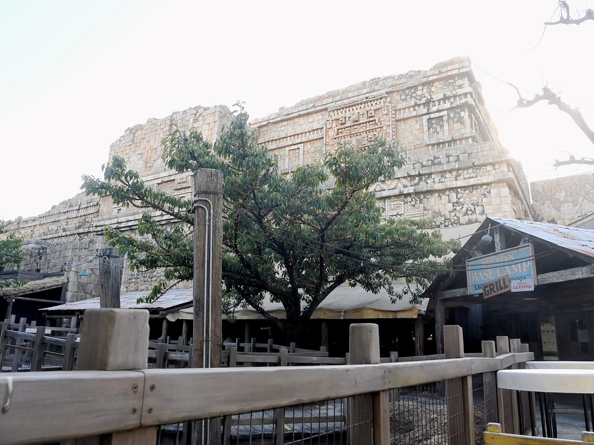 「インディー・ジョーンズ・アドベンチャー:クリスタル・スカルの魔宮」や「レイジングスピリッツ」など人気のアトラクションの近くにあるユカタン・ベースキャンプ・グリル。