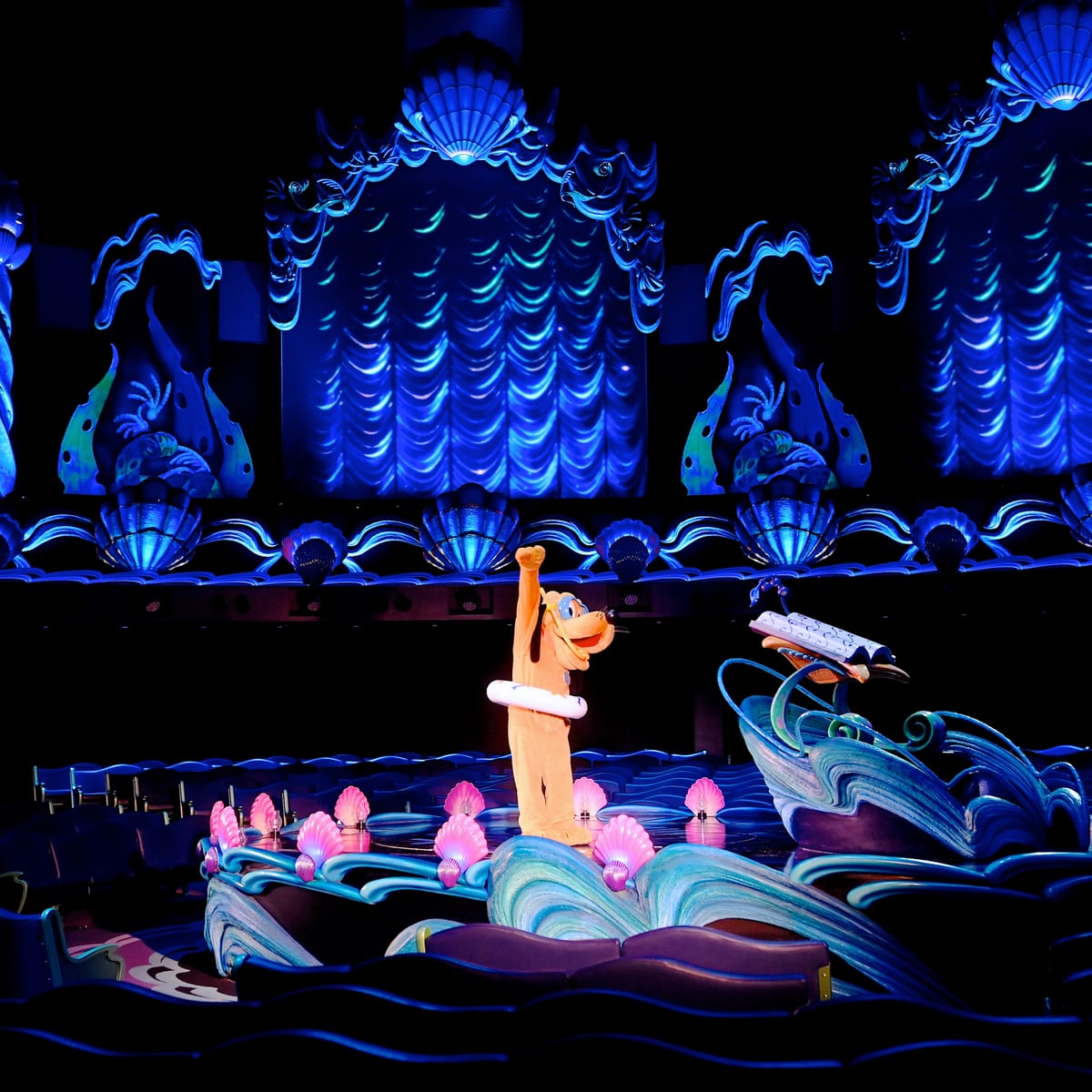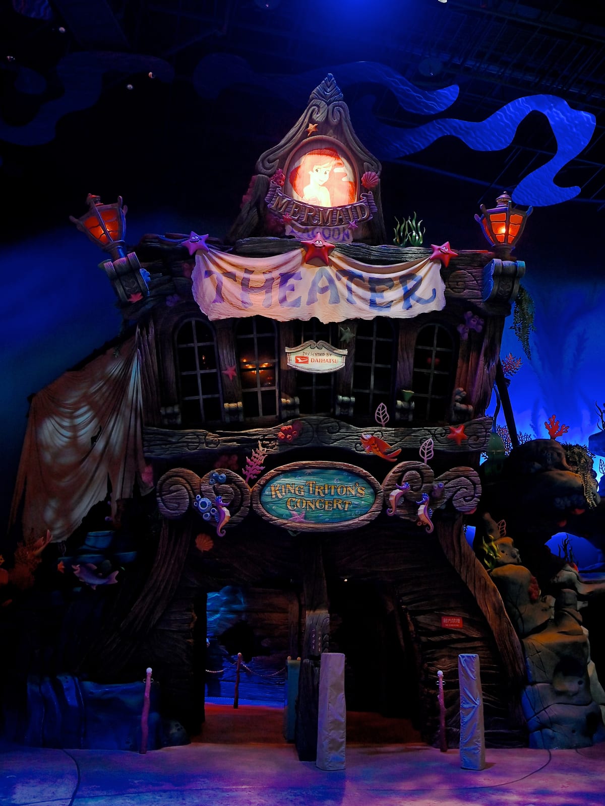 ディズニー映画『リトル・マーメイド』の「アリエル」と仲間たちが登場するミュージカルショー「キング・トリトンのコンサート」が公演されていた、まるで海底にいるかのような空間「マーメイドラグーンシアター」