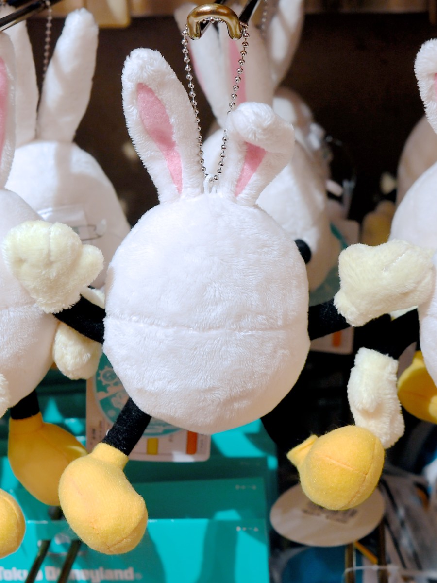 ウサギの耳がついたタマゴのキャラクター"うさたま”や『うさたま大脱走』コスチュームのミッキーマウスたちがかわいいアイテム。