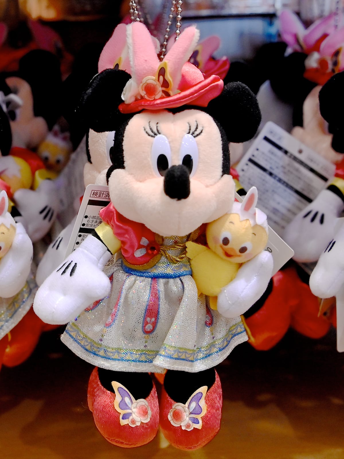 うさピヨを抱っこしたミニーマウスのぬいぐるみバッジも。