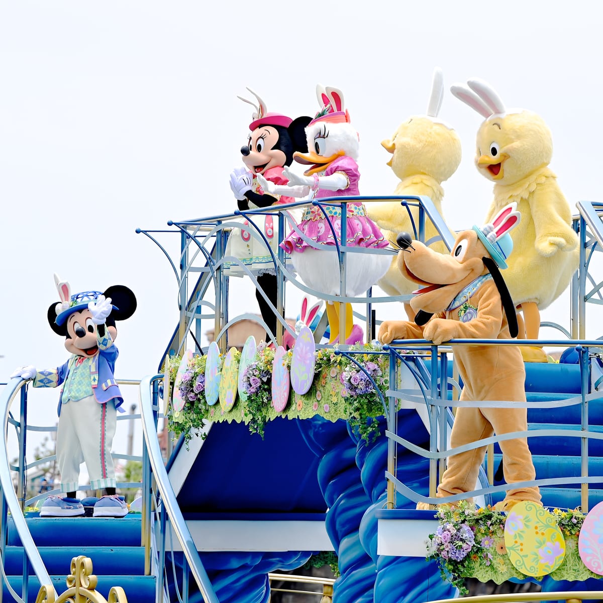 ミッキーマウスたちは、メインショー『Tip-Topイースター』で見せてくれたコスチューム姿です。