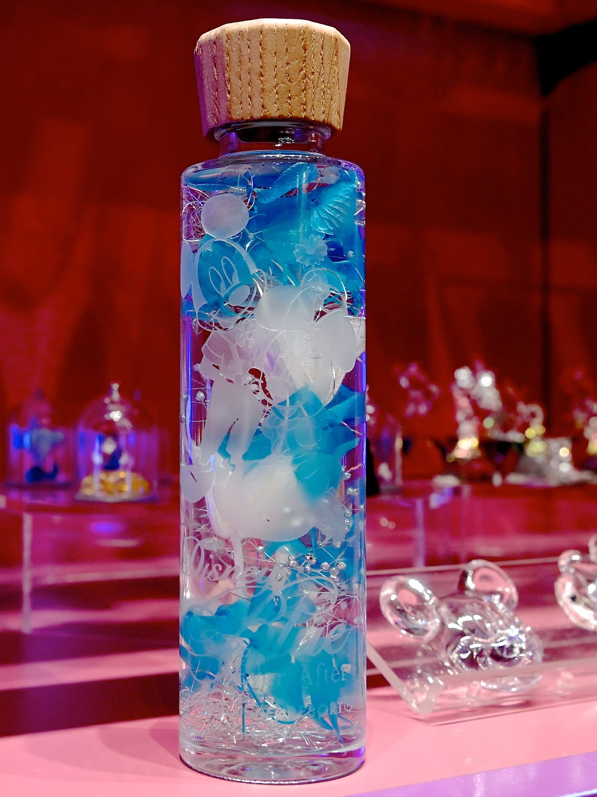 ガラスのボトルには、「ミッキーマウス」と「ミニーマウス」がデザインされています☆