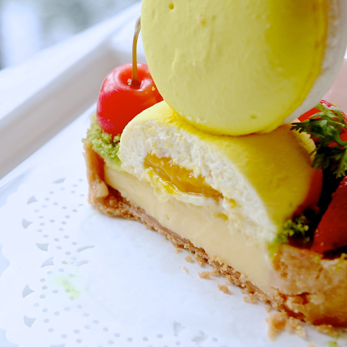 タルトには、レモンのジャムとレモンのクリームが入っていて酸味が強く感じられます☆