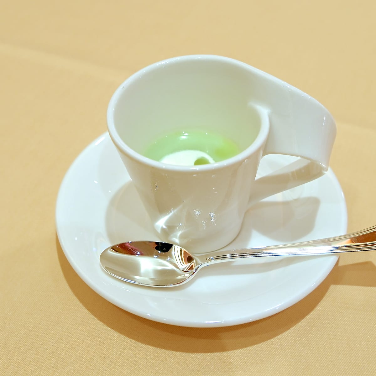 アニューズ・ブーシュは、旬のキャベツを使用した冷製スープ。
