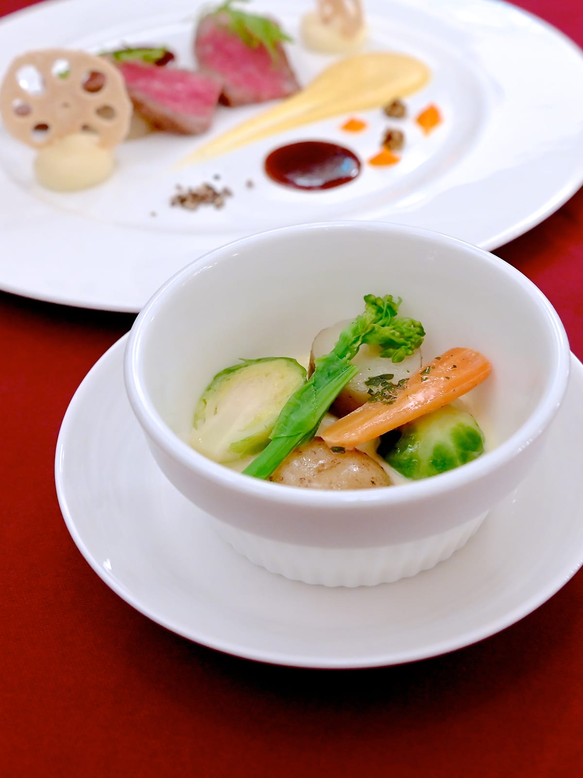 やさしい味わいの春野菜のバター仕立ても添えられ食感も楽しめます。
