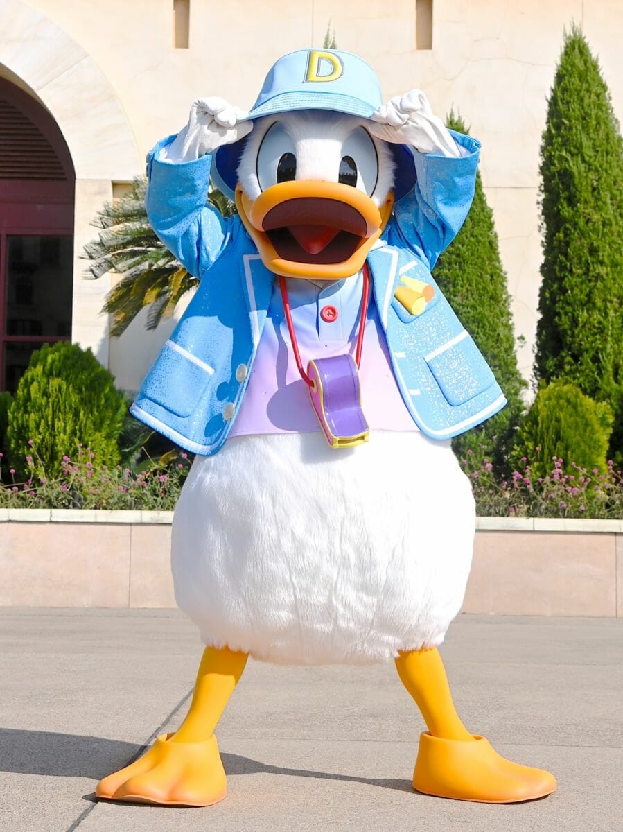 アクティビティーディレクターのドナルドダックのコスチューム。