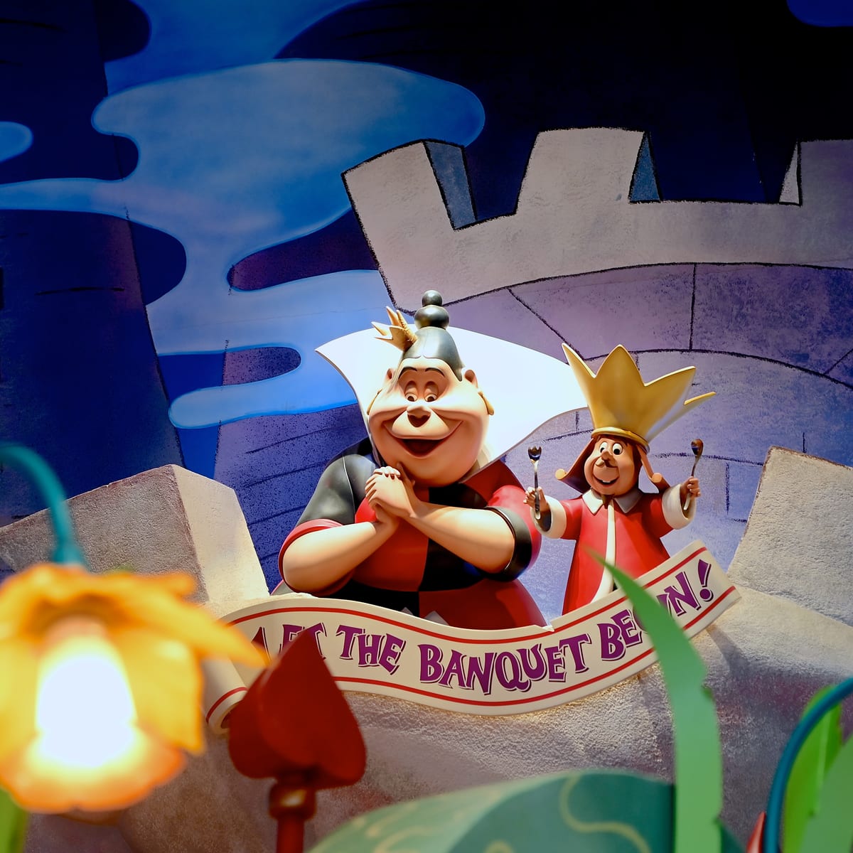 ハートの女王のお城の敷地内にあるレストラン「クイーン・オブ・ハートのバンケットホール」の入り口をデザインしたフィギュア。