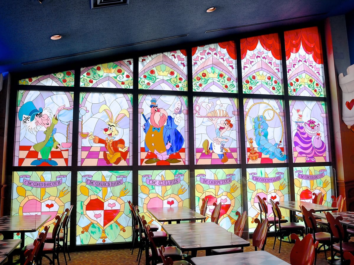 ディズニー映画『ふしぎの国のアリス』に登場するハートの女王のお城で開催される晩餐会をイメージした洋食レストランです。