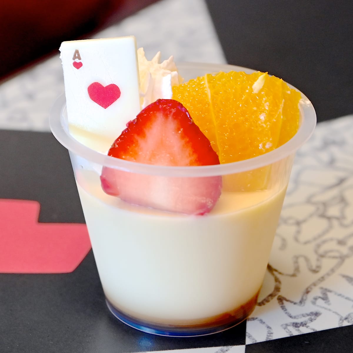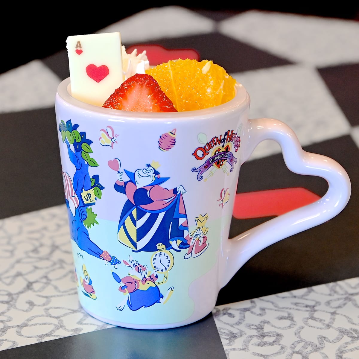 クイーン・オブ・ハートのバンケットホールらしく、トランプのチョコトッピングがポイントです☆