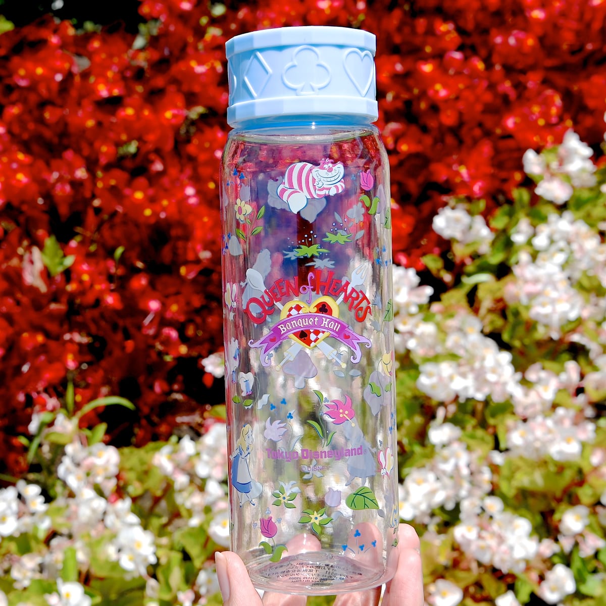 キャップはトランプ柄、クリアなボトルにはクイーン・オブ・ハートのバンケットホールのロゴが中央にデザインされています☆