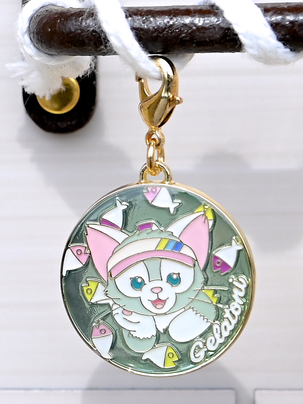 ジェラートが描かれた黄緑色の浮き輪の「ジェラトーニ」デザインチャーム。