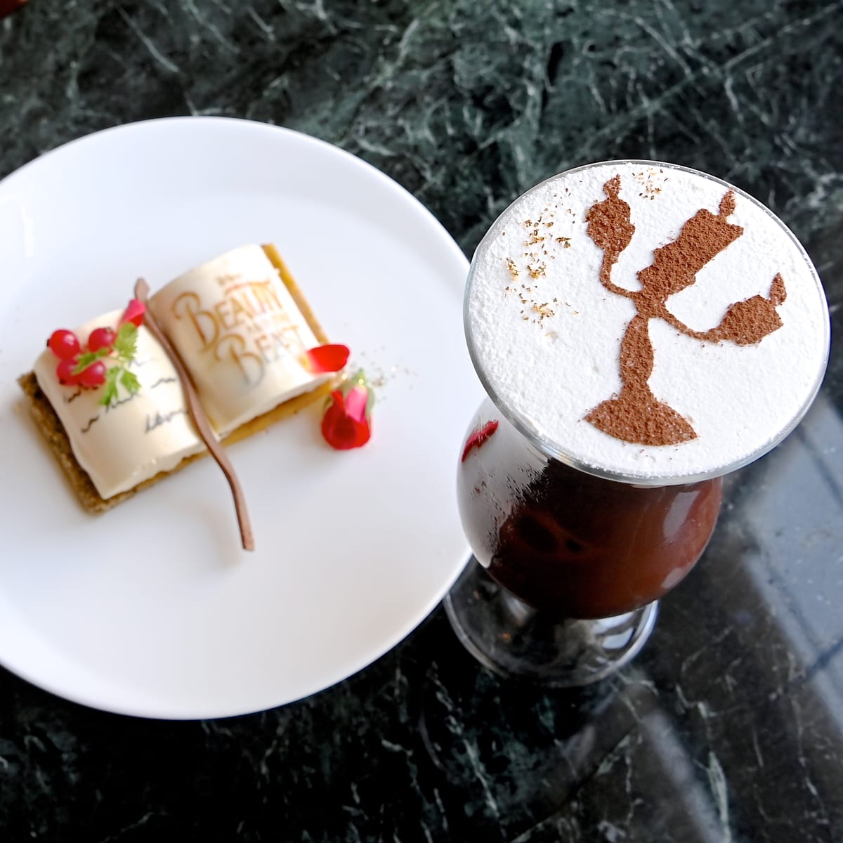 『美女と野獣』の「ベル」モチーフ!ドリーマーズ・ラウンジ オリジナルコーヒー(アイスカフェモカ ア・ラ・ディズニー)