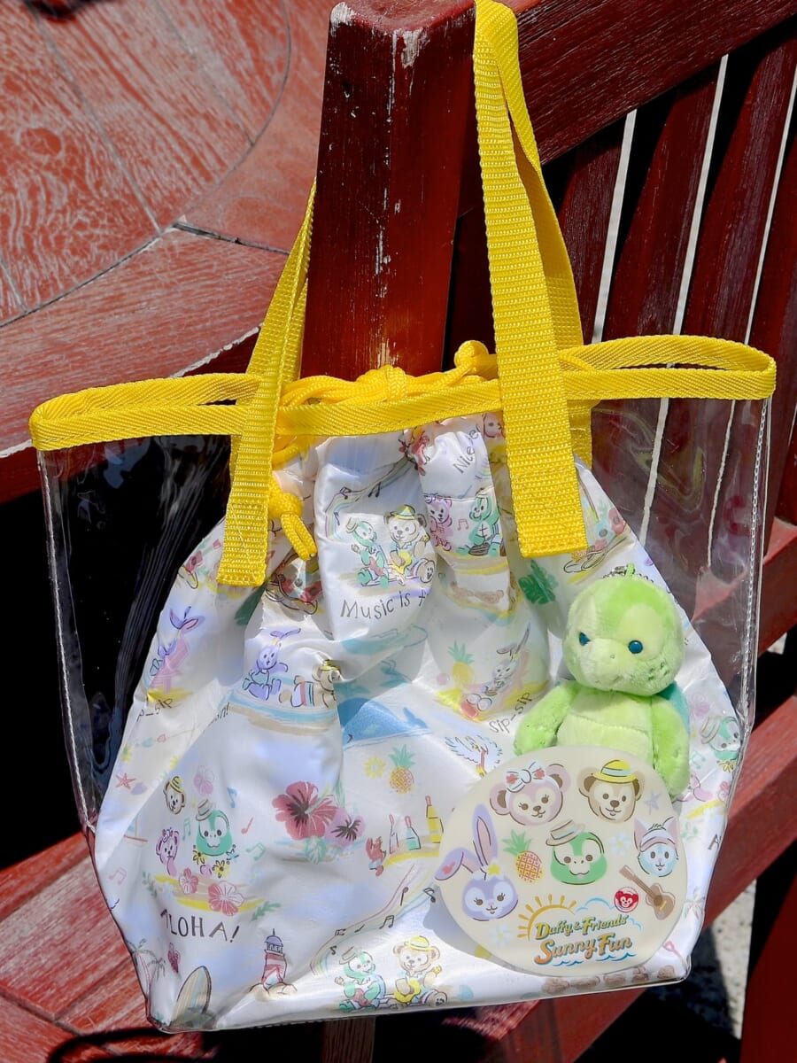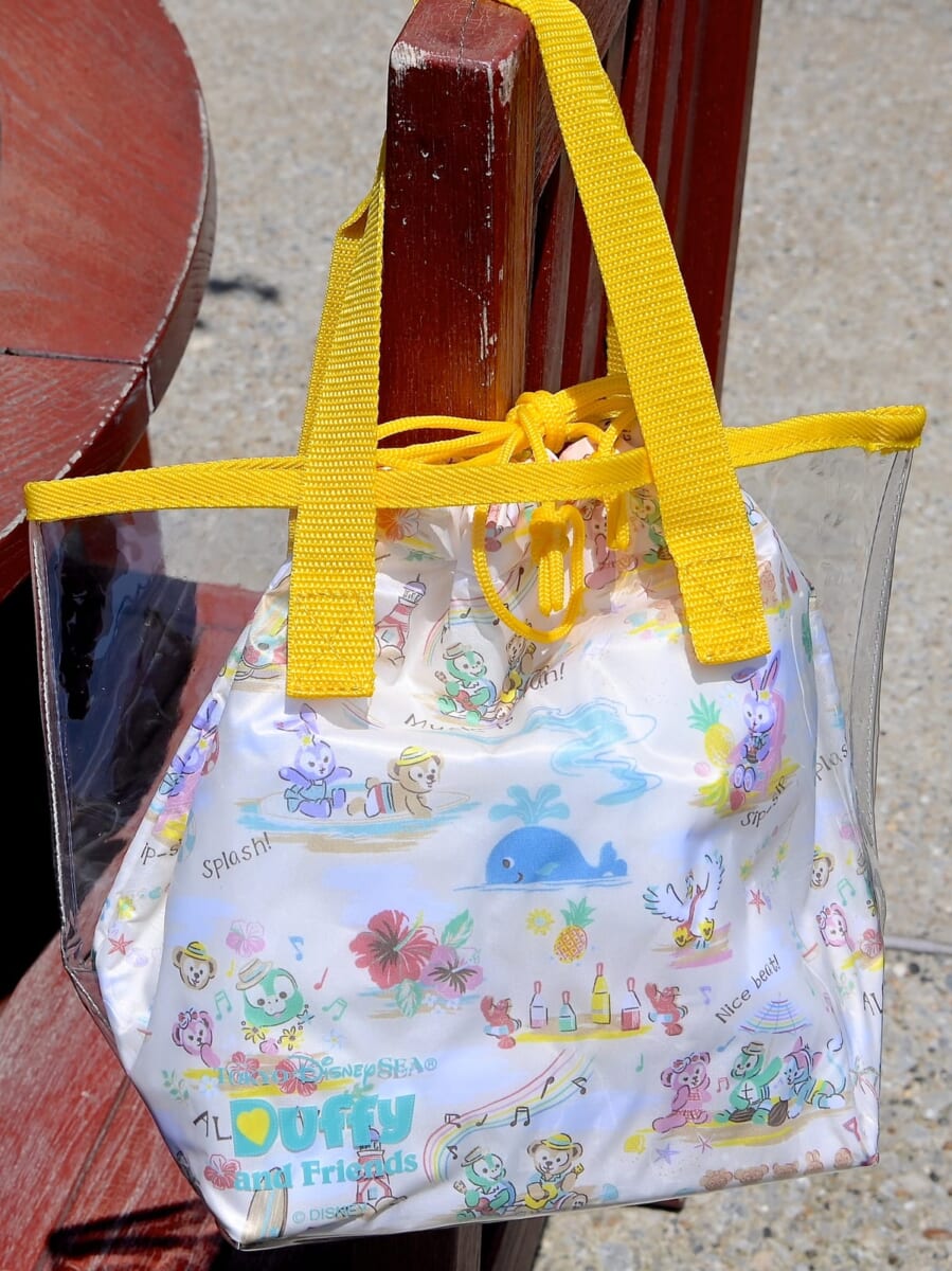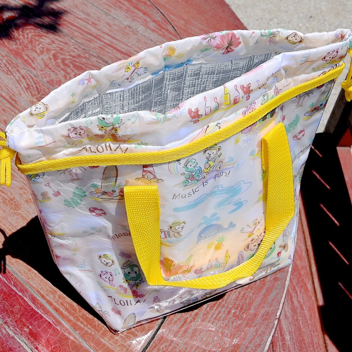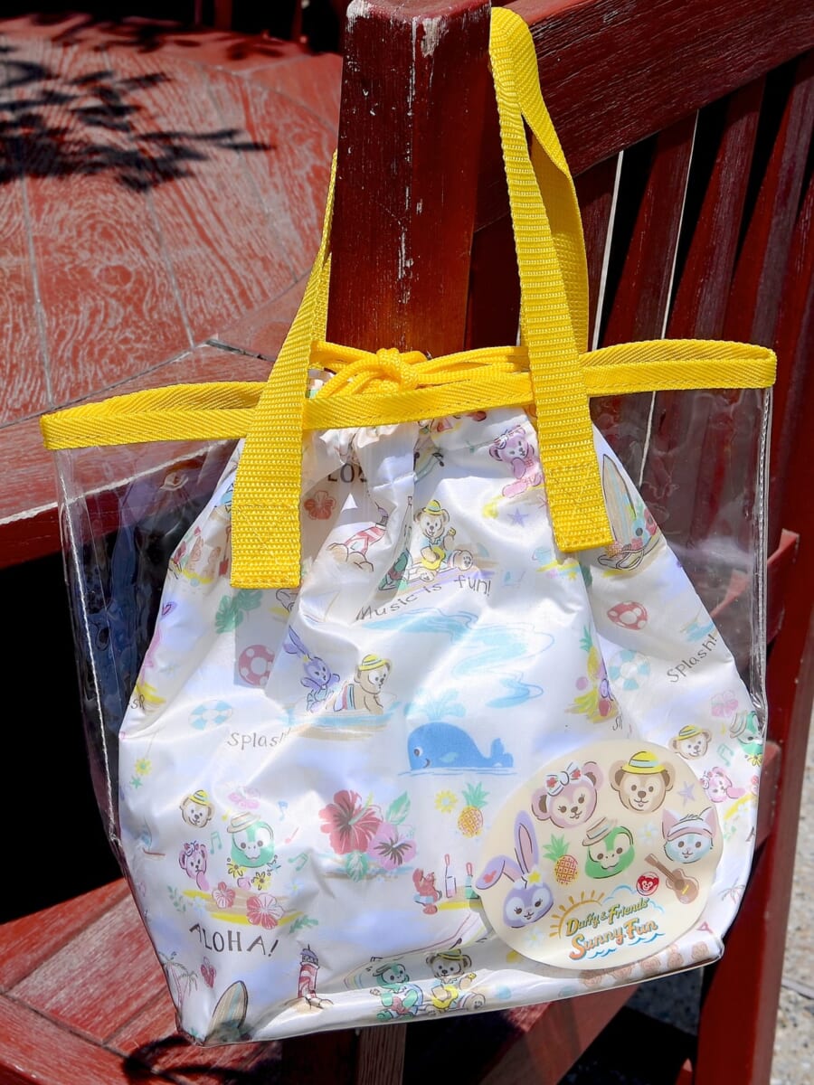 巾着には夏を楽しむダッフィー、シェリーメイ、ジェラトーニ、ステラ・ルー、そしてオル・メルの姿がデザインされています☆