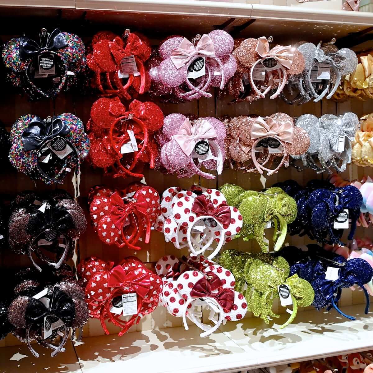 ミニーマウスカチューシャにスパンコールデザインの新色が続々と登場中。