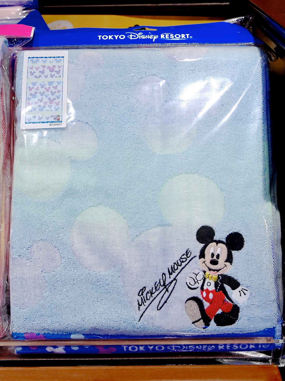 東京ディズニーランド、東京ディズニーシーの定番グッズ、ディズニーキャラクターデザインのタオル。