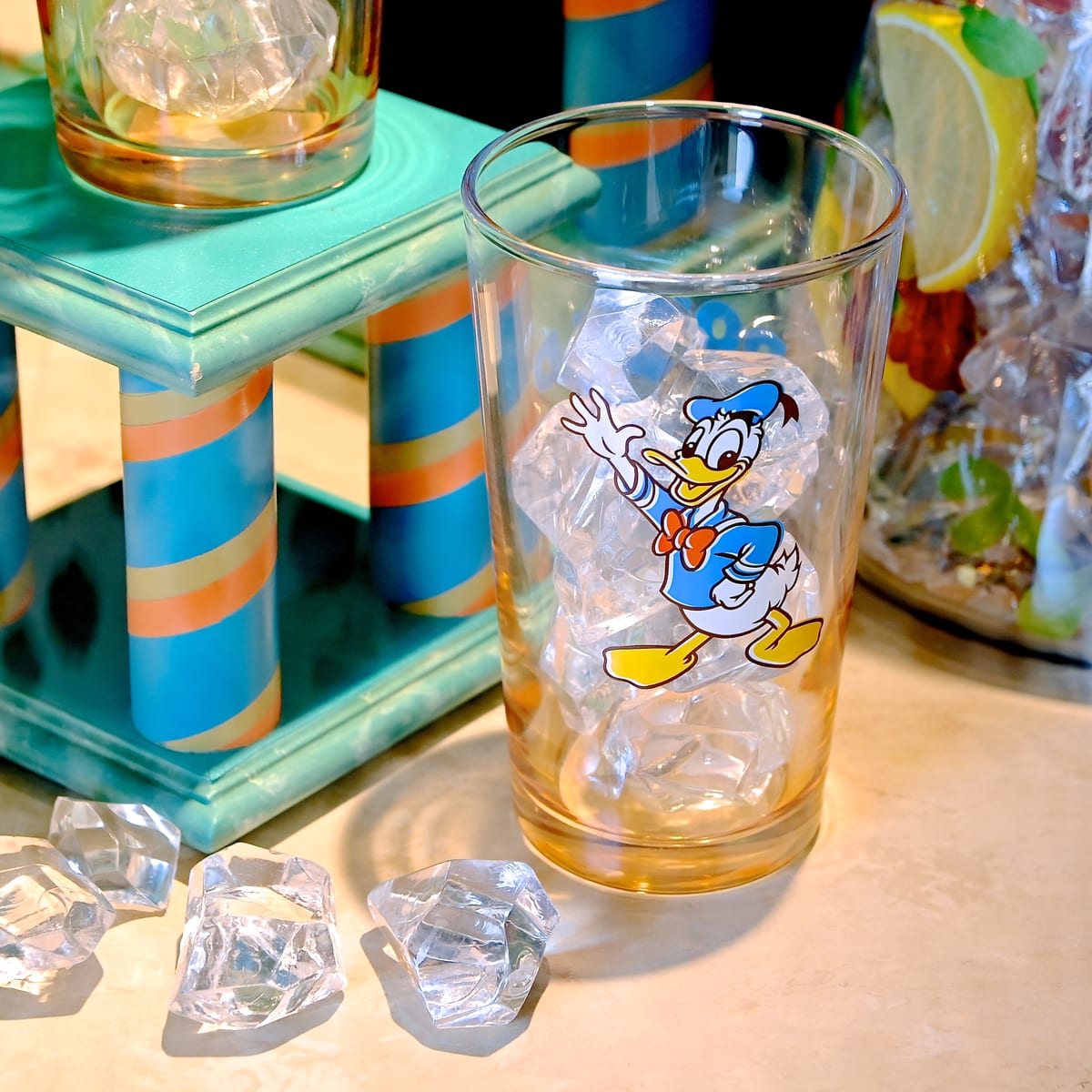 クラシックテイストの「ドナルドダック」がデザインされたグラス。