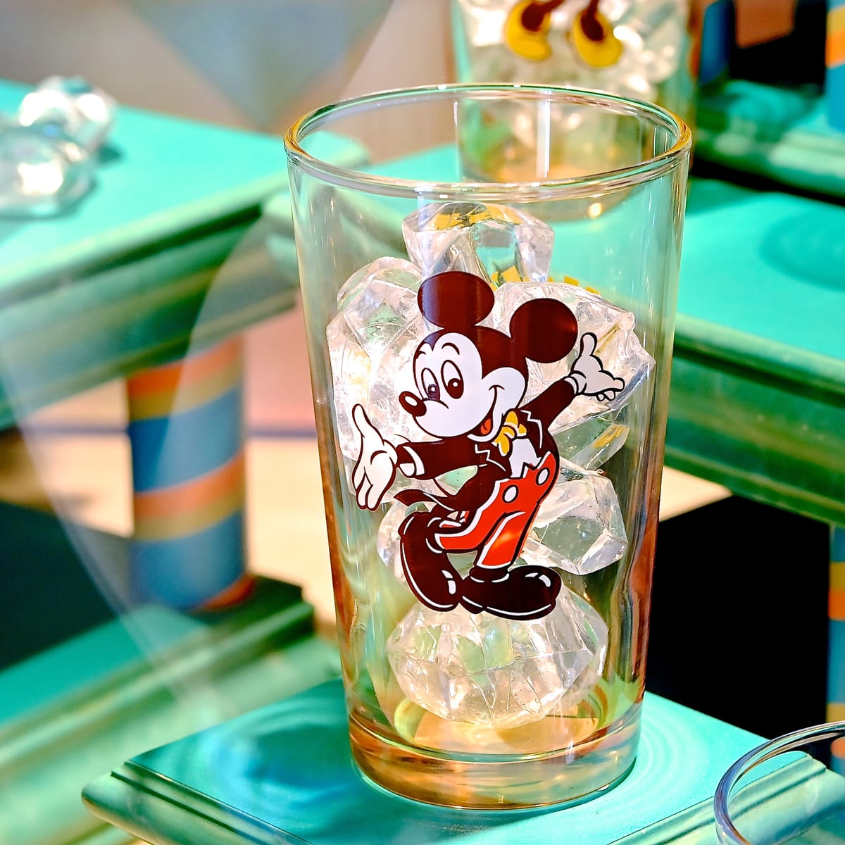 クラシックテイストの「ミッキーマウス」がデザインされたグラス。