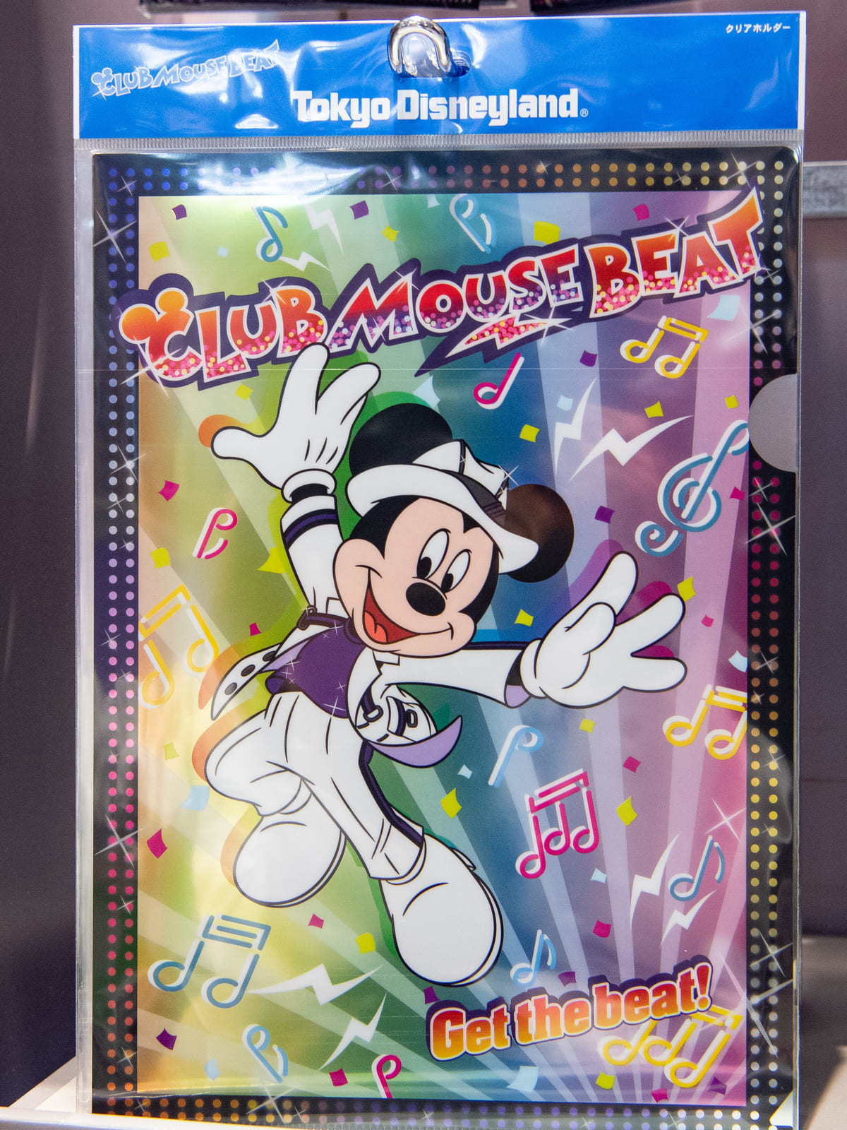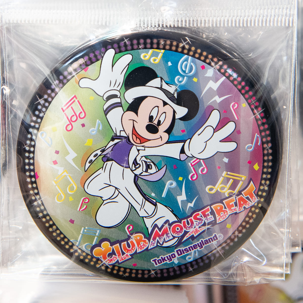 格好いいキラキラコスチュームのミッキーマウスと「クラブマウスビート」のロゴ、音符がデザインされたスペシャルグッズ。