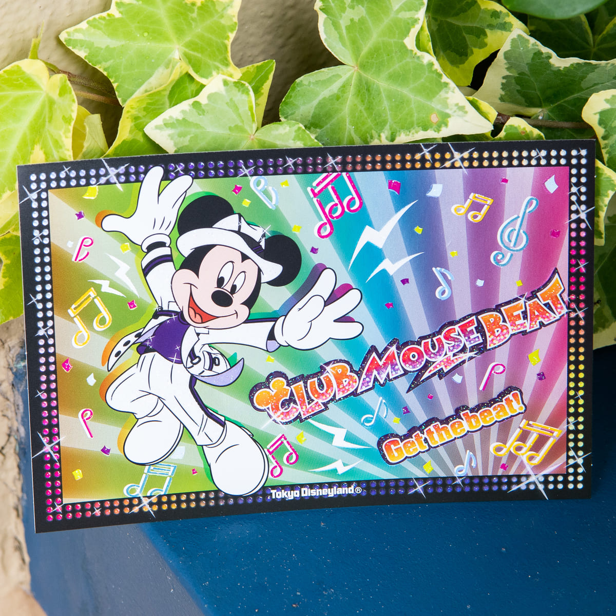 新ショー「クラブマウスビート」のミッキーマウスやお音符、ロゴがデザインされた華やかなポストカード。