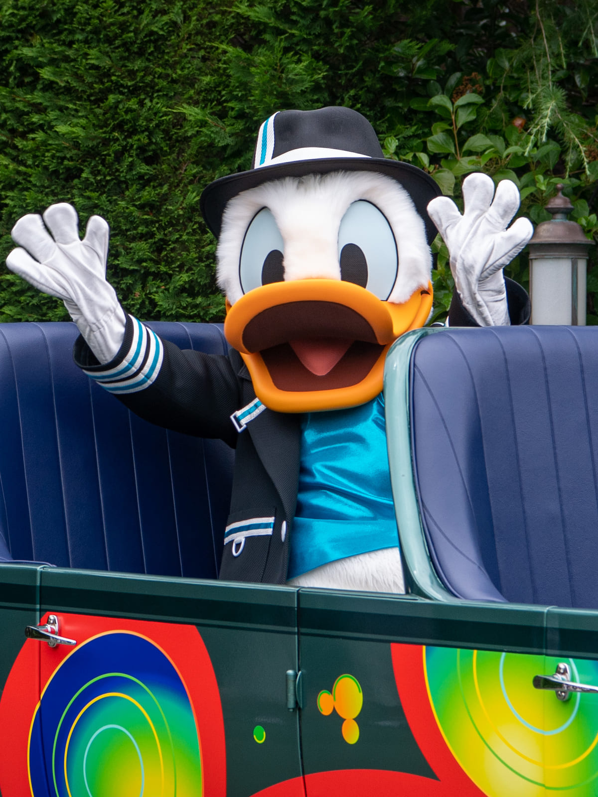 続いて、深緑色のオープンカーにのりドナルドダックが登場!