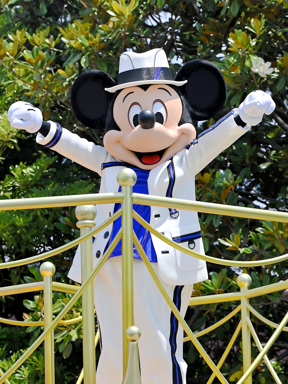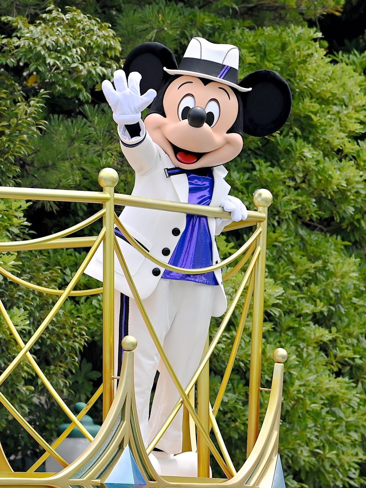 ホワイトにパープルの華やかで格好いいコスチューム姿のミッキーマウス。