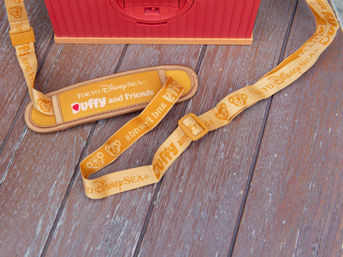 ストラップ紐はダッフィーカラーに、ダッフィー&フレンズの文字とダッフィーとシェリーメイのお顔がデザインされています。