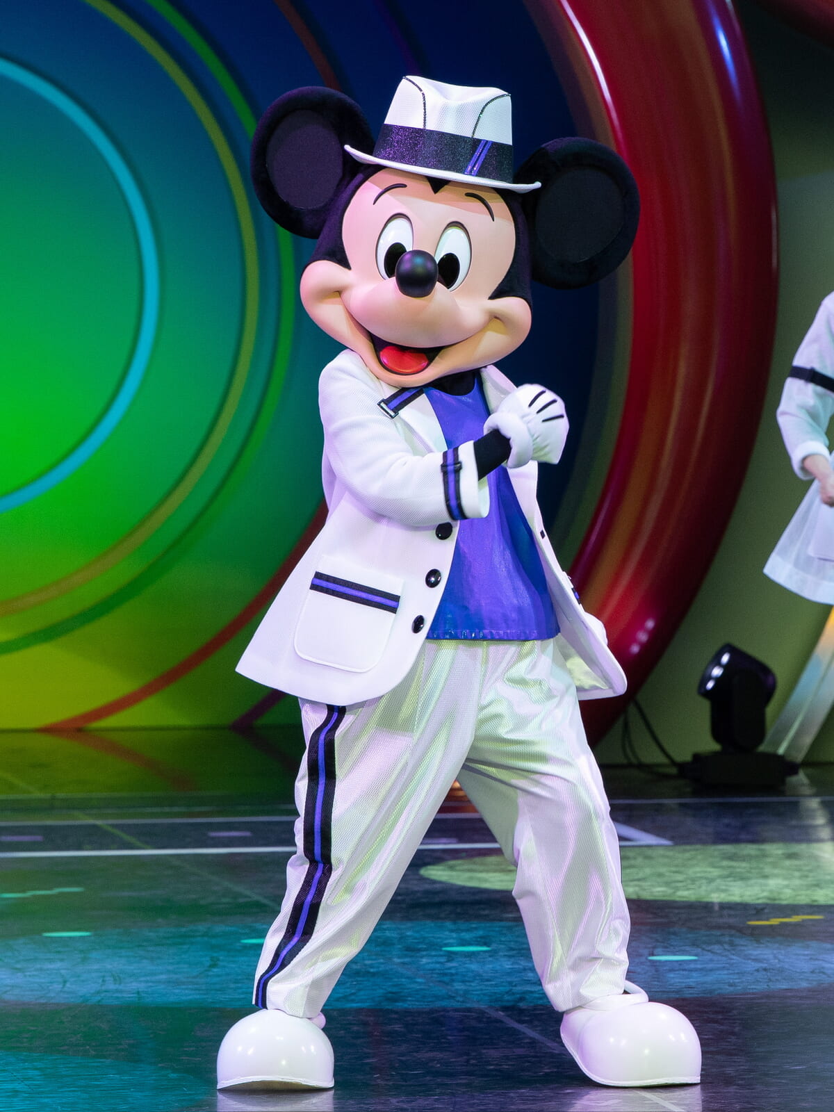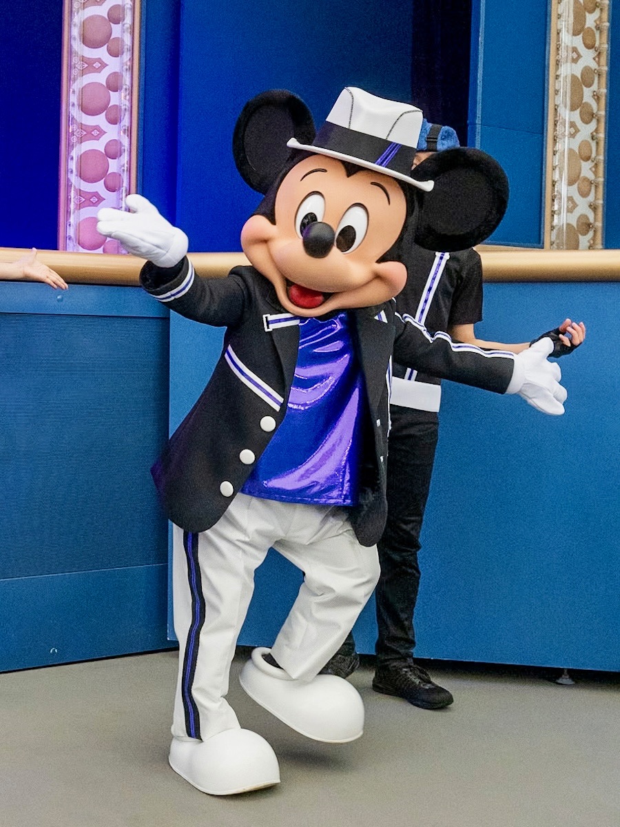 ステージはクールな雰囲気に包まれ、ビートのある音楽とともに黒いジャケットに衣装を変えたミッキーマウスが再び登場!