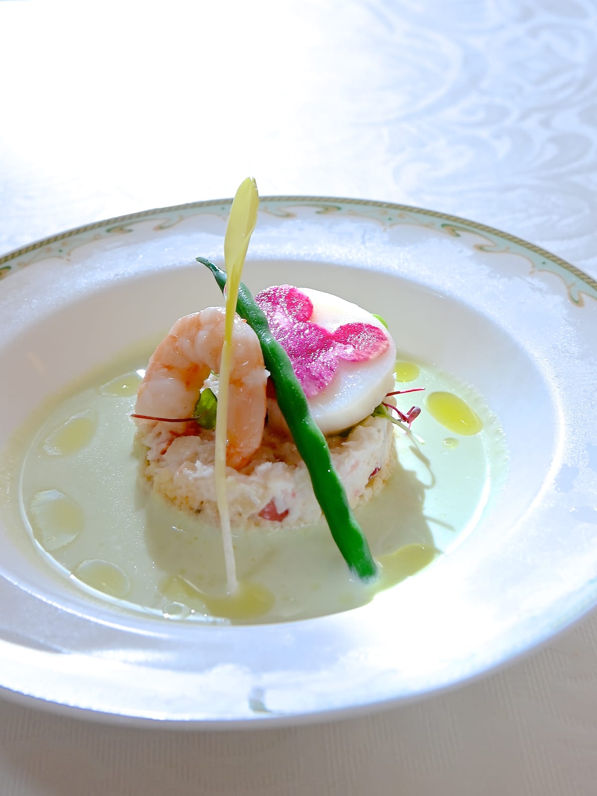 前菜は「シーフードとクスクスのサラダ、枝豆のスープ仕立て」