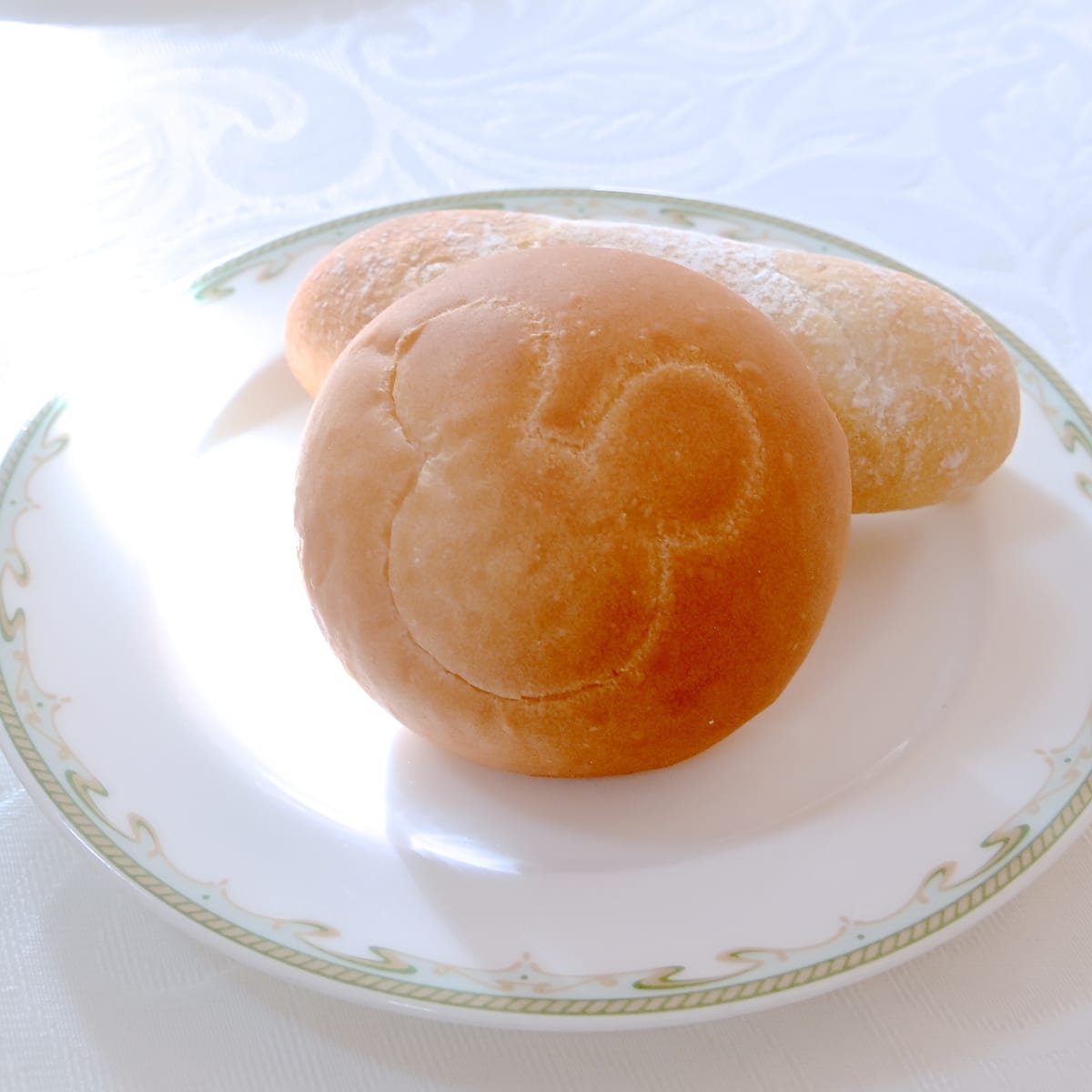 パンはミッキーデザインのやわらかいパンとバケットの2種類。