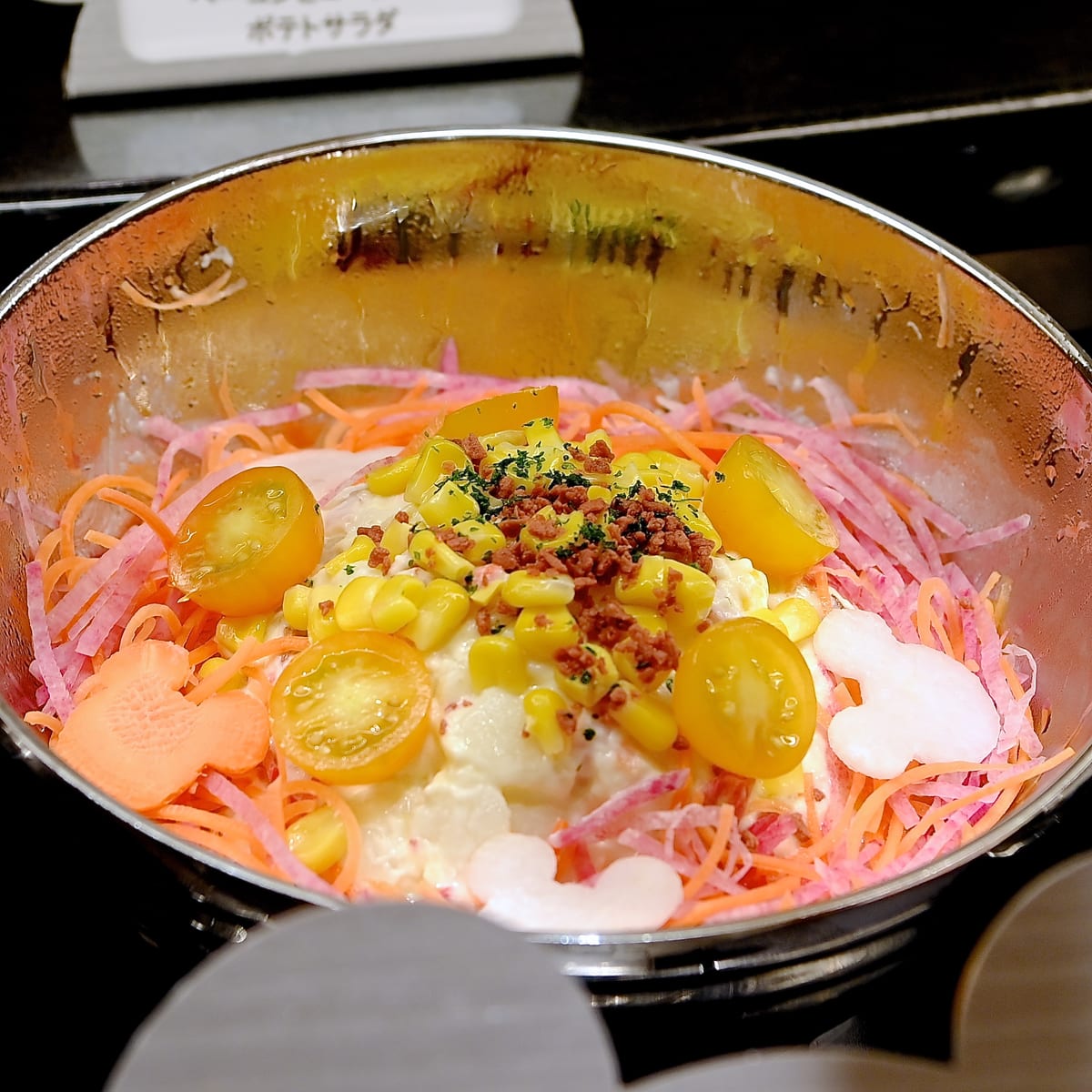 ミッキーシェイプの野菜もかわいいポテトサラダ。