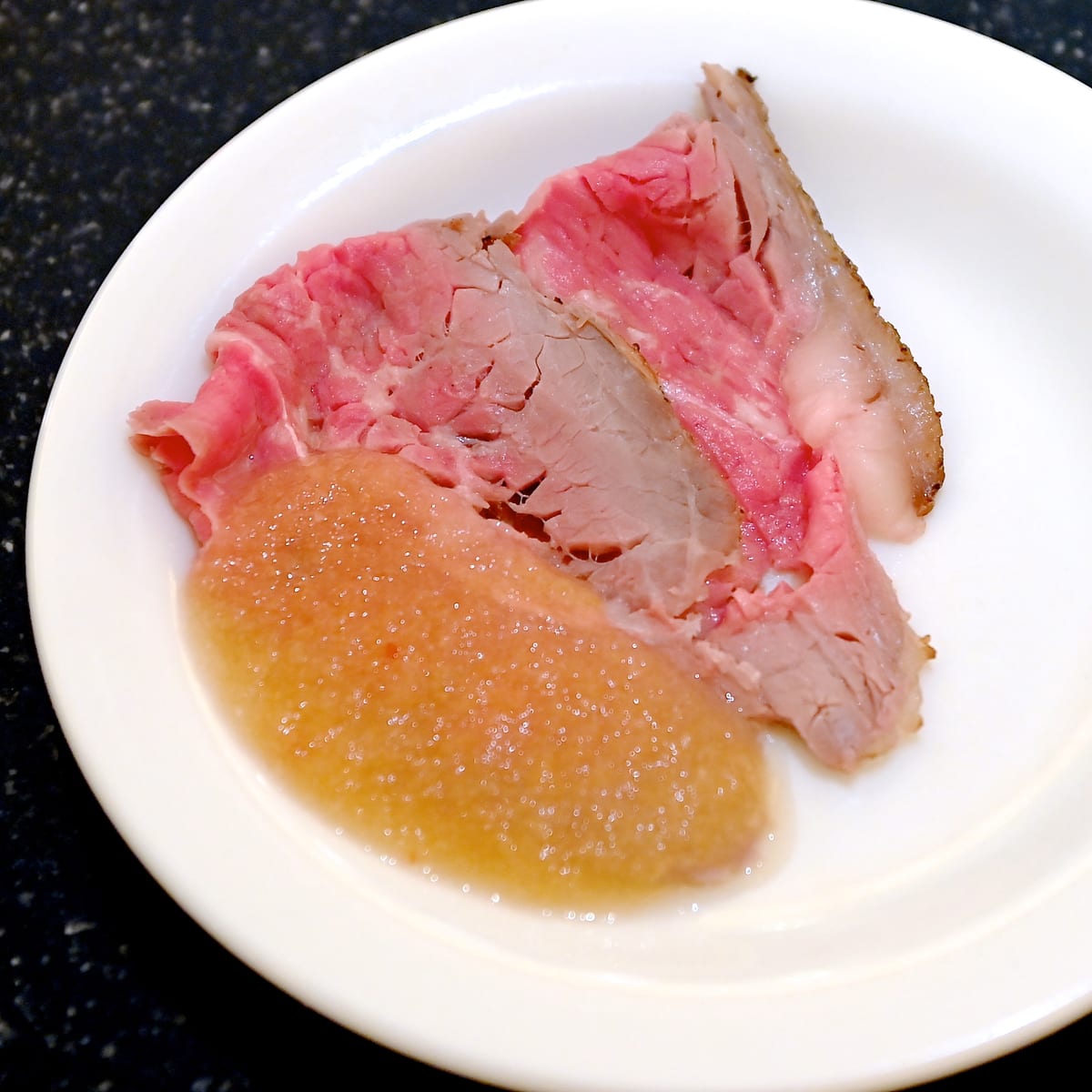 グレイビーソース、おろしポン酢、レフォールをお好みでつけていただきます。