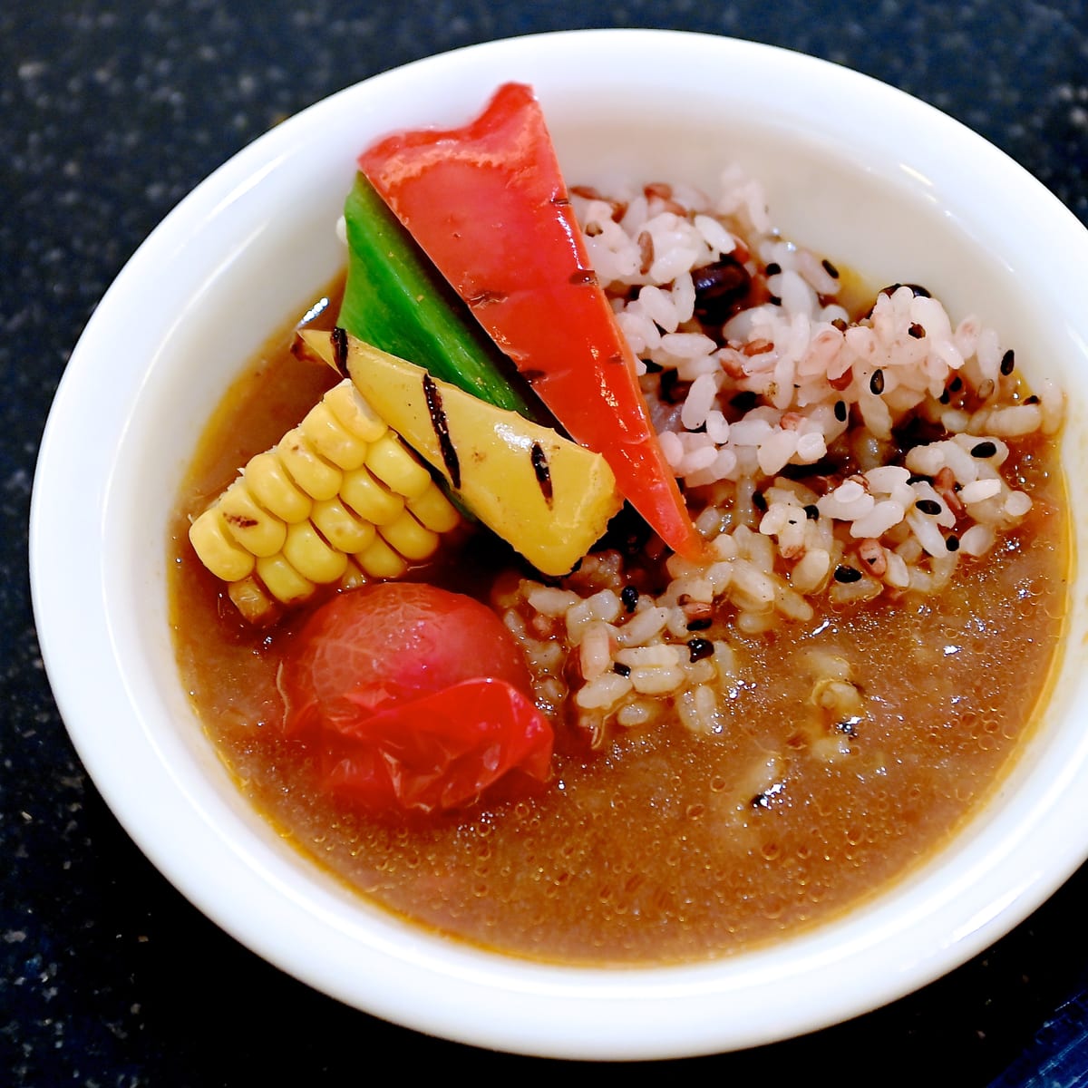 雑穀米に色鮮やかなグリルベジタブルをトッピングしていただきます。
