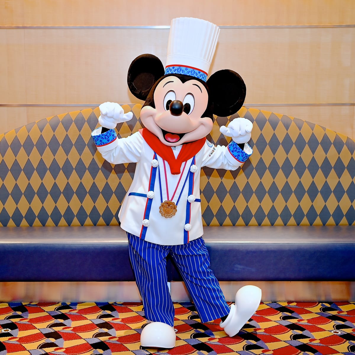 かわいいシェフコスチュームのミッキーマウスとグリーティングが楽しめます☆
