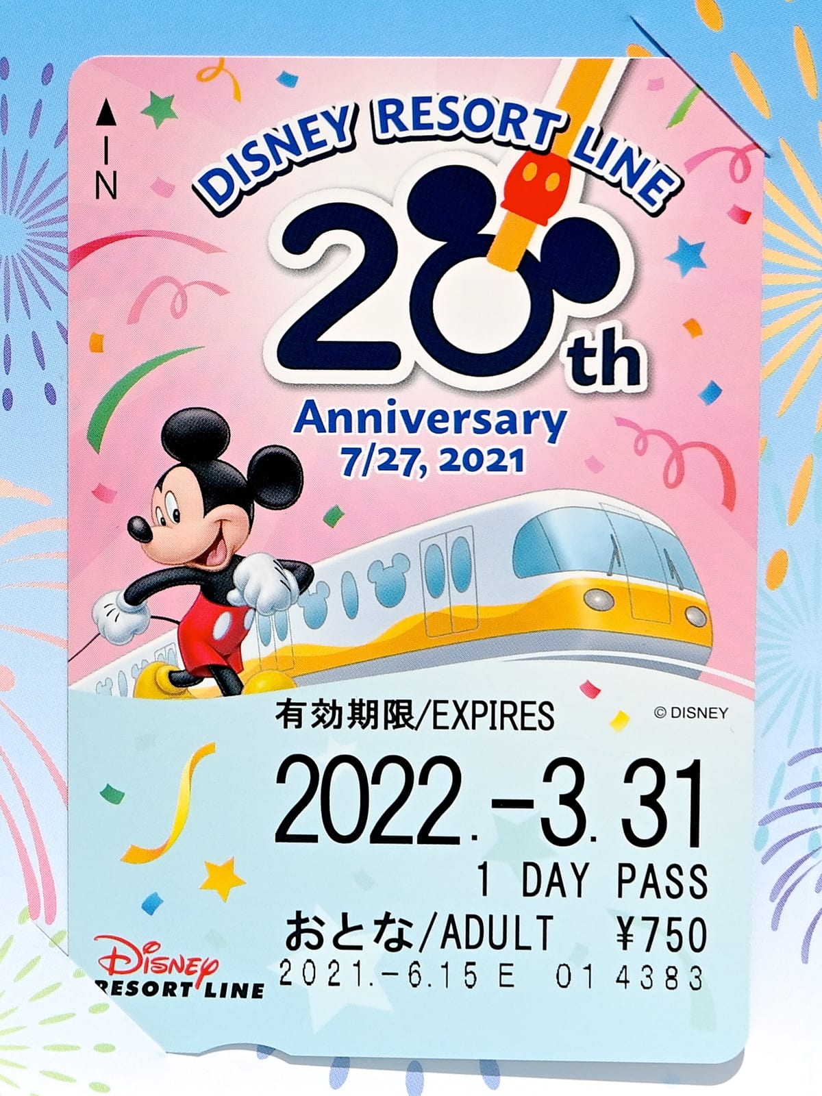 リゾートライナーのシール台紙付き!ディズニーリゾートライン開業20周年フリーきっぷの紹介でした。