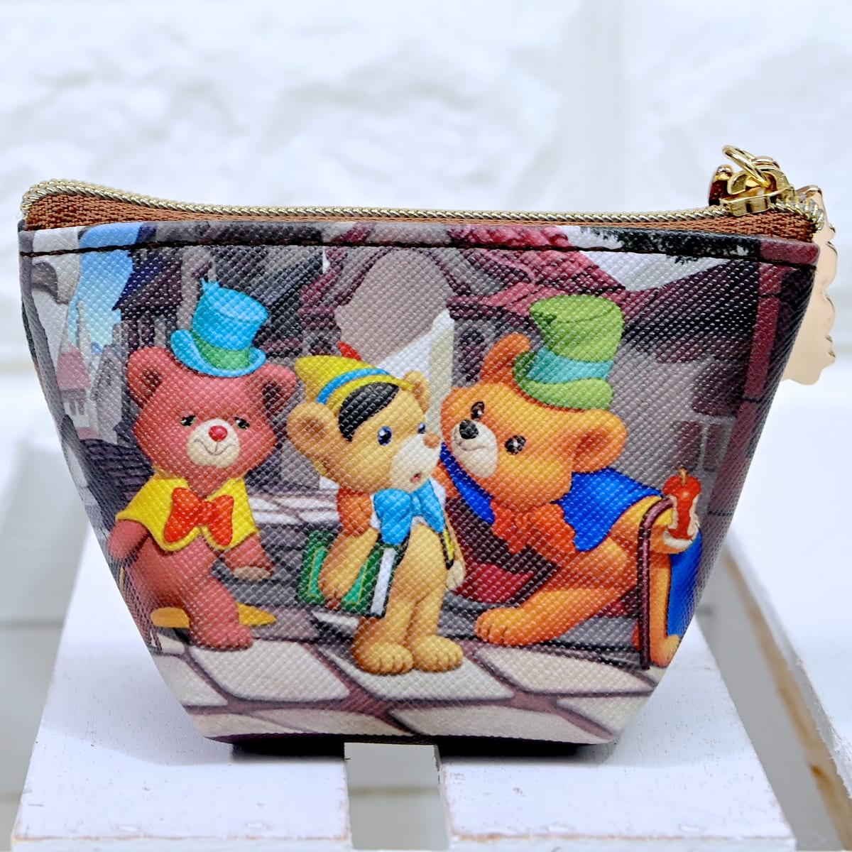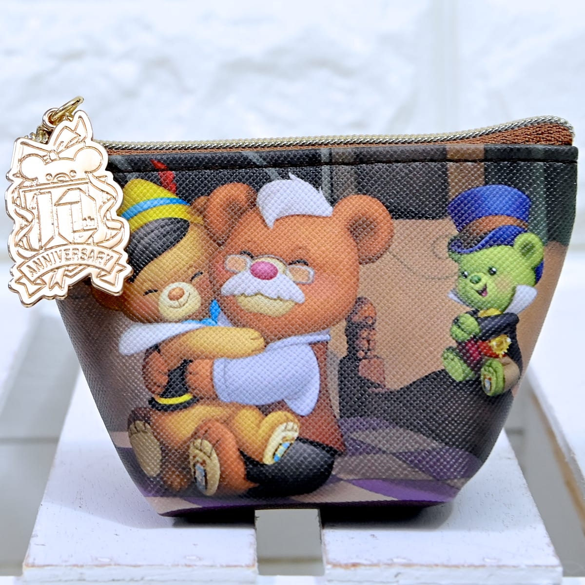 『ピノキオ』から生まれたユニベアシティ、ビスコッティ、ズコット、ルッコラがデザインされたプチポーチ。