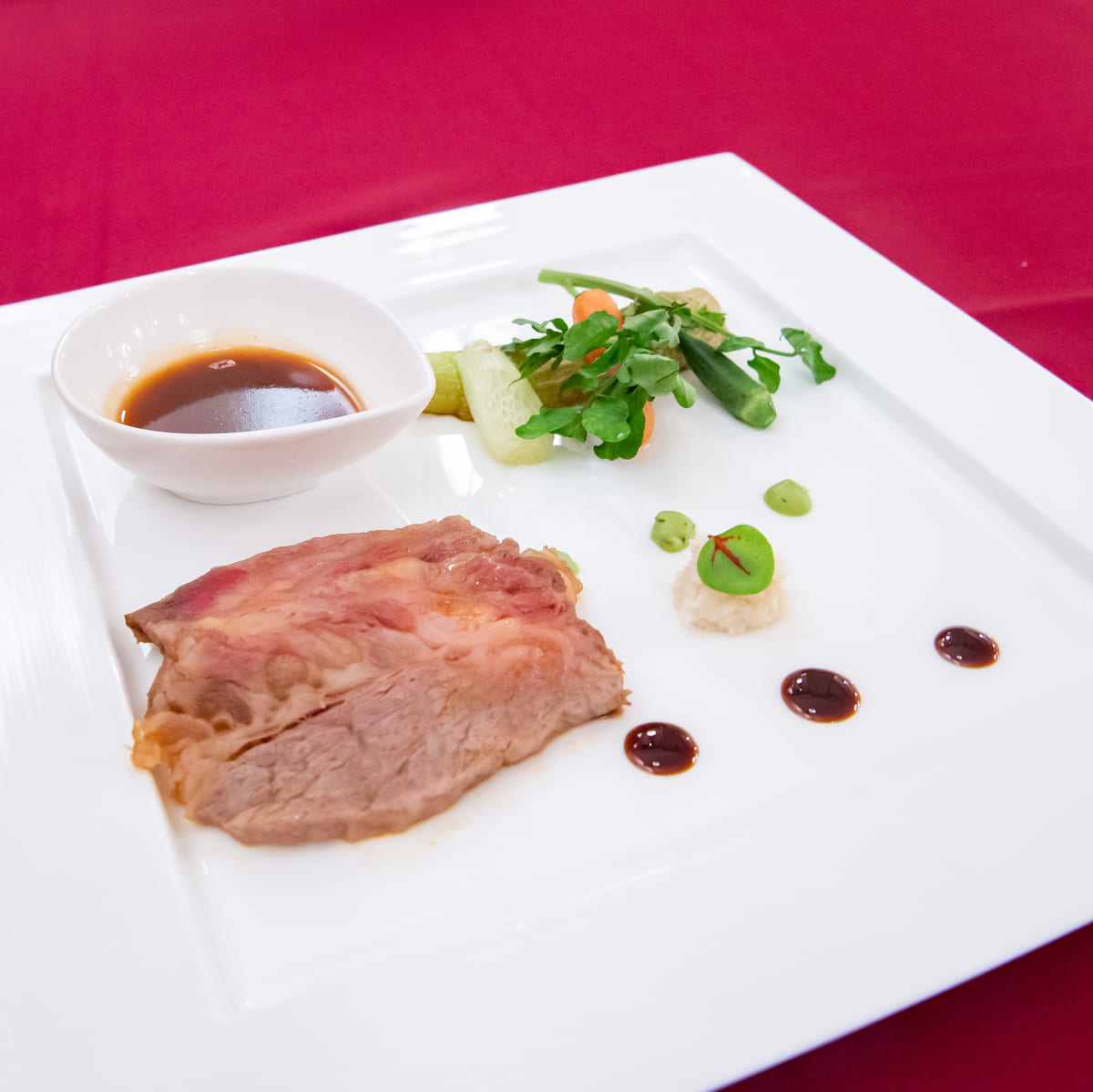 黒毛和牛のポッシェ、レフォールと夏野菜添え