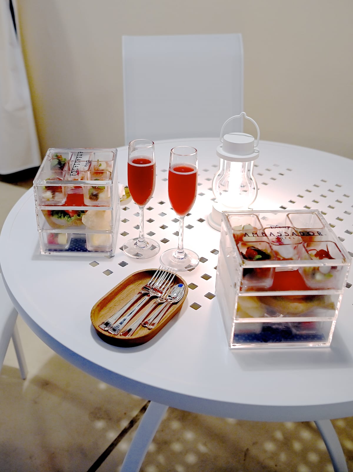 はじめに、スパークリングワインまたはノンアルコールドリンクが1杯提供されます。