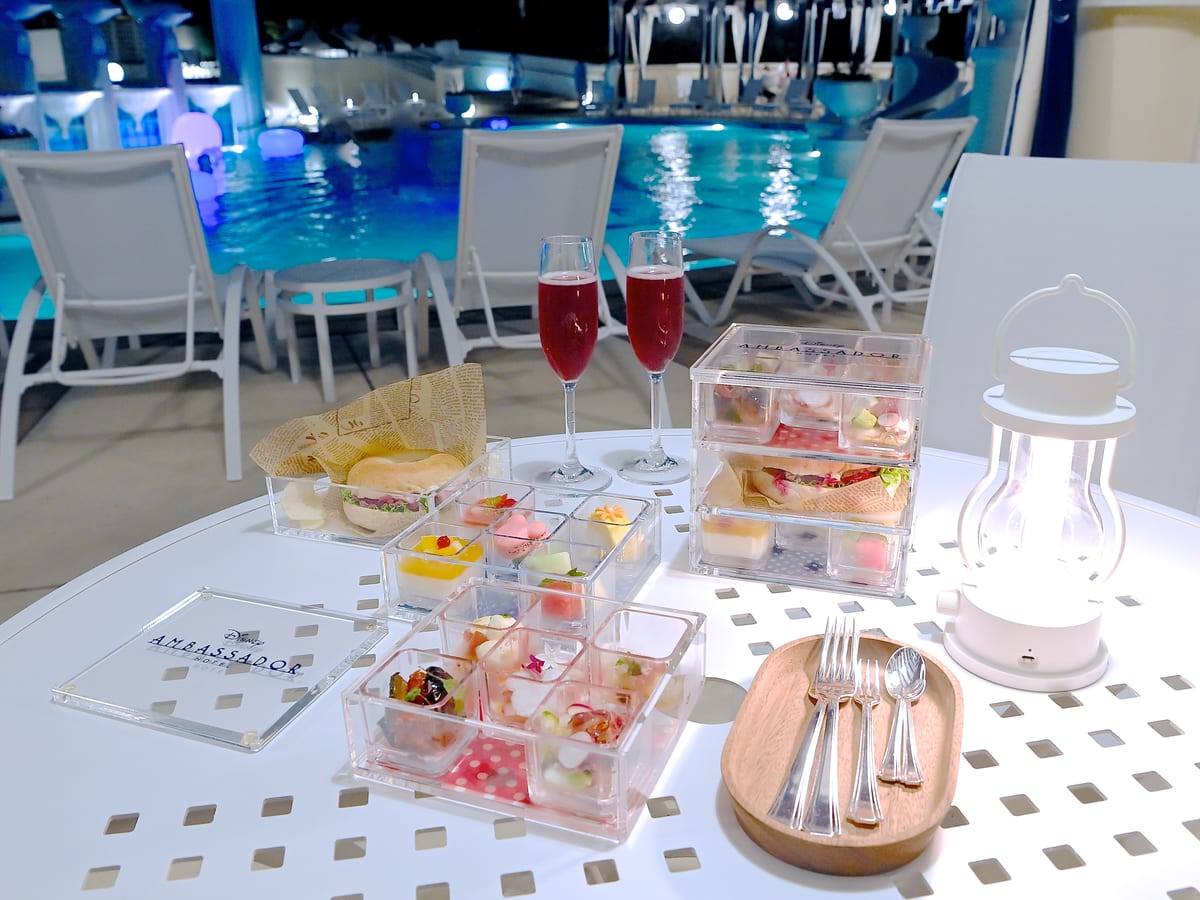 内容:プール入場券、プールサイドでの軽食、ウェルカムドリンク