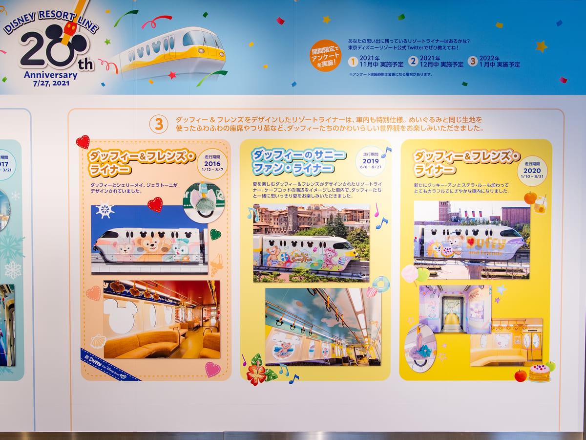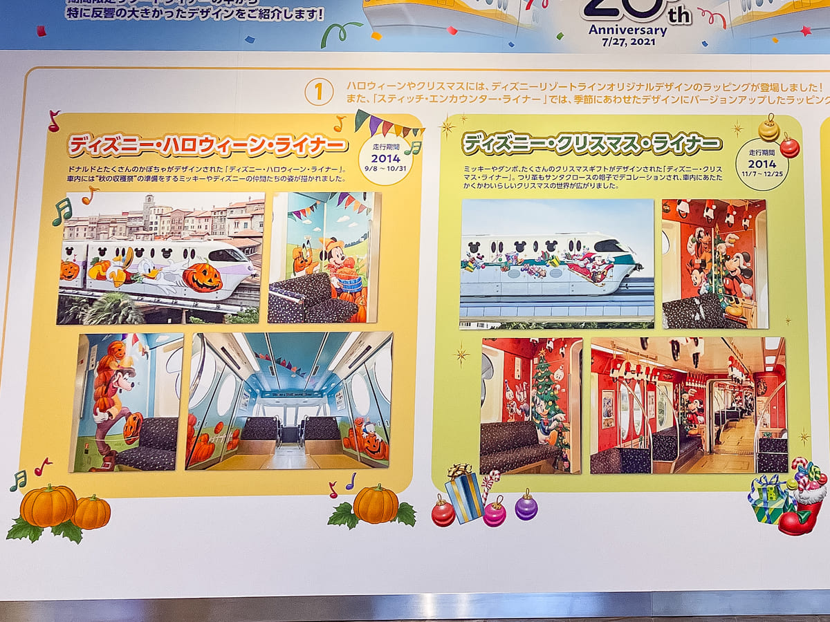 20周年を記念して、期間限定リゾートライナーの中から人気のデザインを紹介したパネルが登場☆