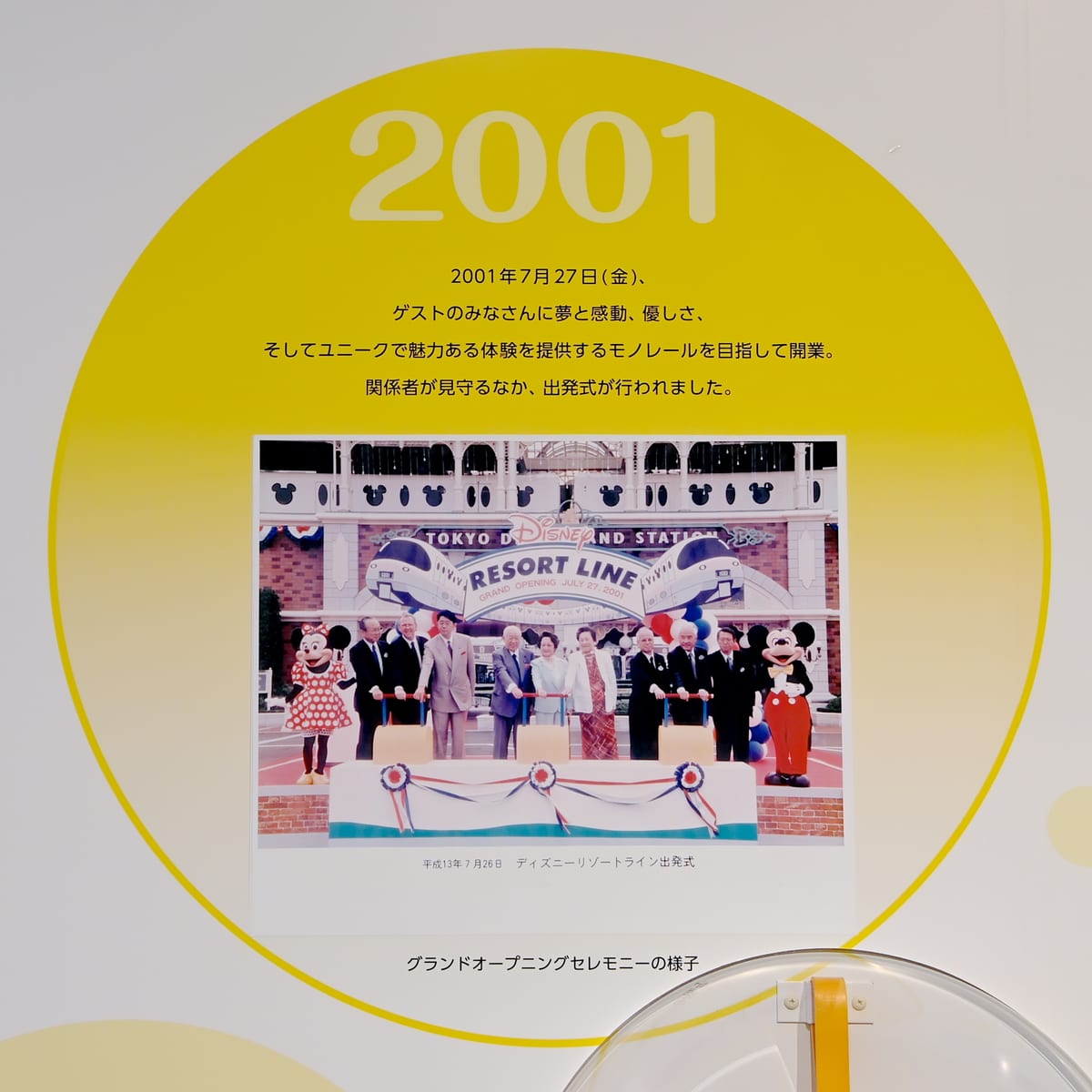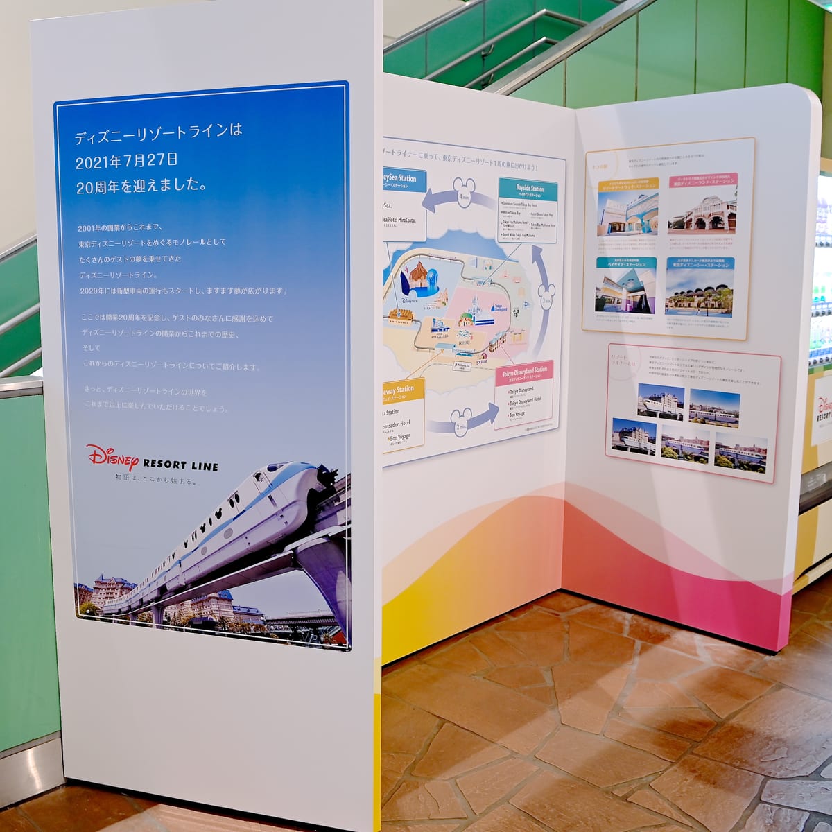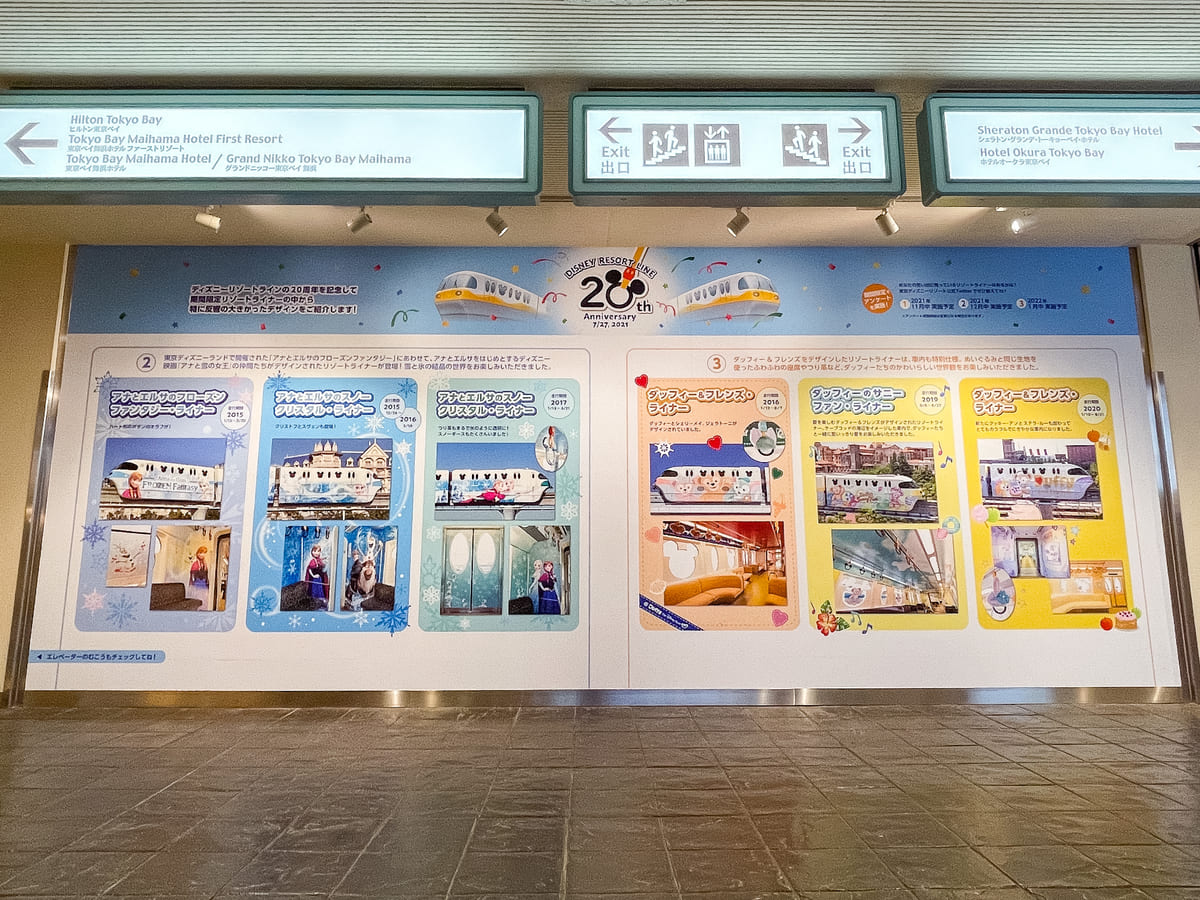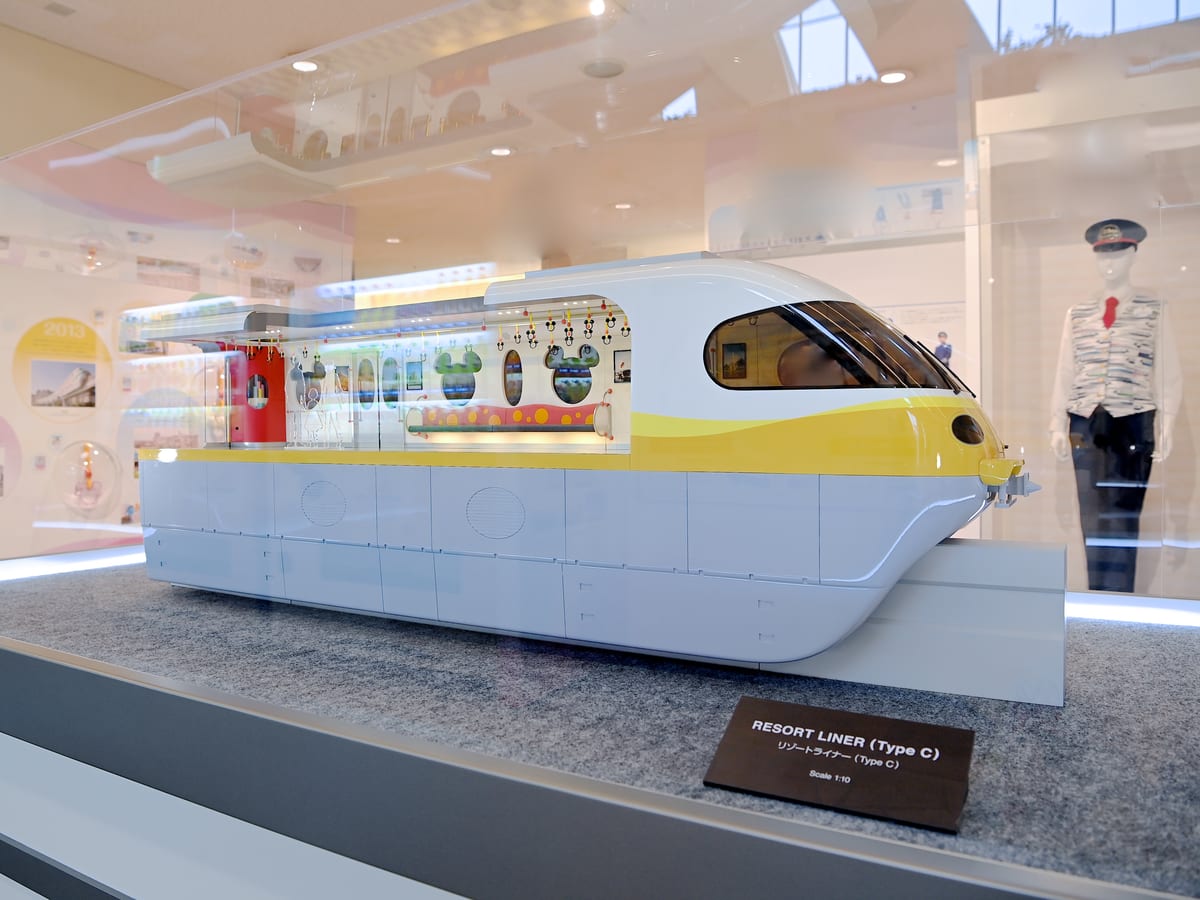 ディズニーリゾートラインの20年間のあゆみと、さらなる進化が感じられる展示がひろがります。
