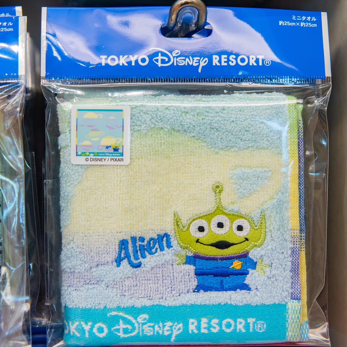 ディズニー/ピクサー映画『トイ・ストーリー』シリーズの人気キャラクター「リトルグリーンメン(エイリアン)」デザインのミニタオル。