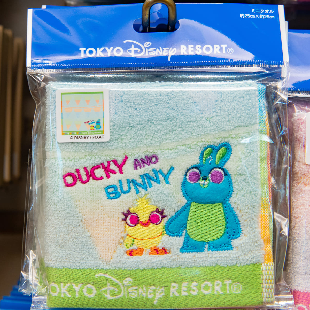 ディズニー/ピクサー映画『トイ・ストーリー4』に登場した「ダッキー&バニー」デザインのミニタオル。