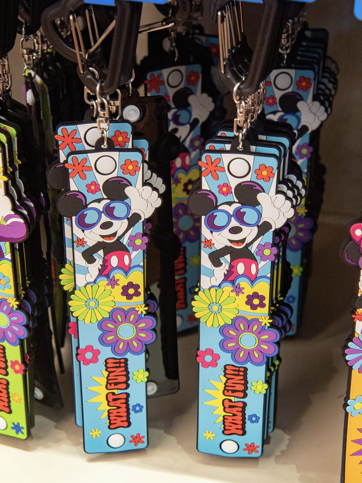 サングラスをかけた「ミッキーマウス」とカラフルなお花がデザインされたタオルホルダー。