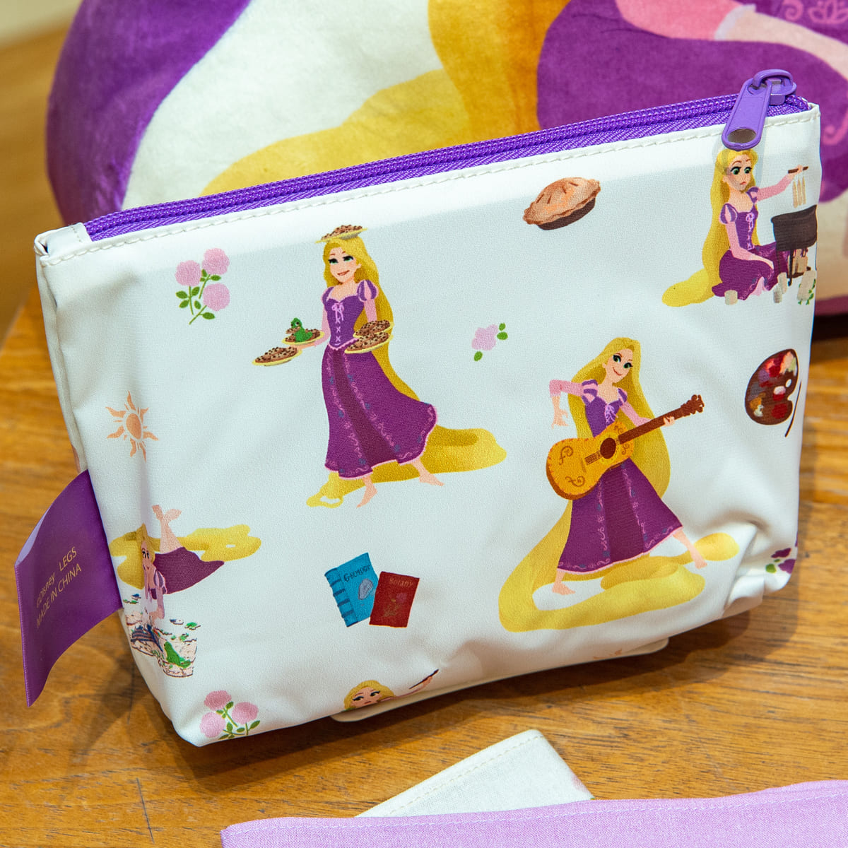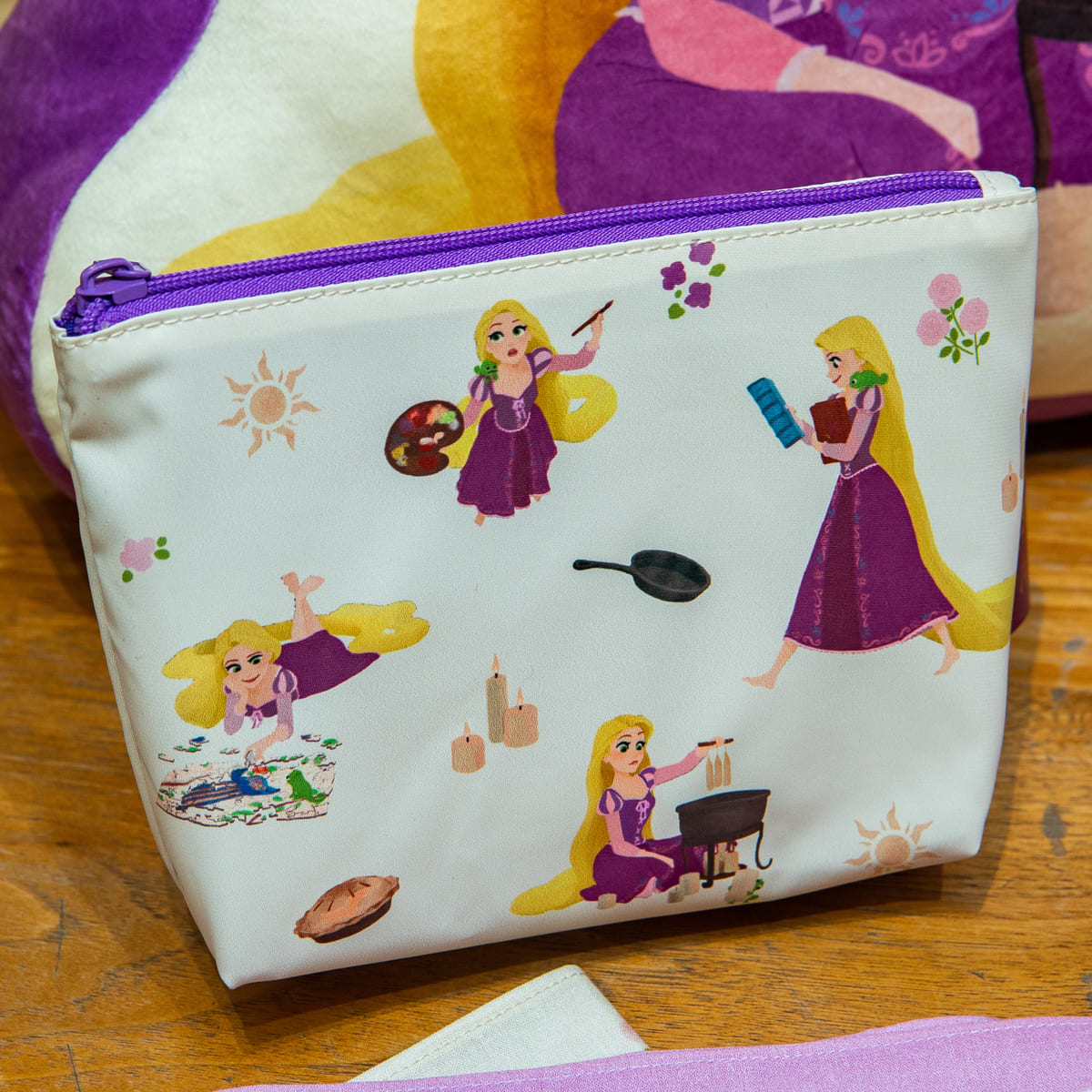 多趣味なラプンツェルのアートが総柄でデザインされたポーチ。