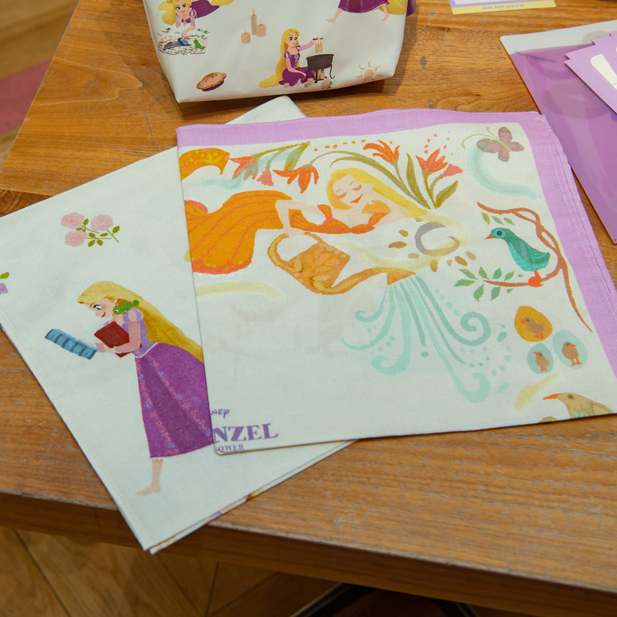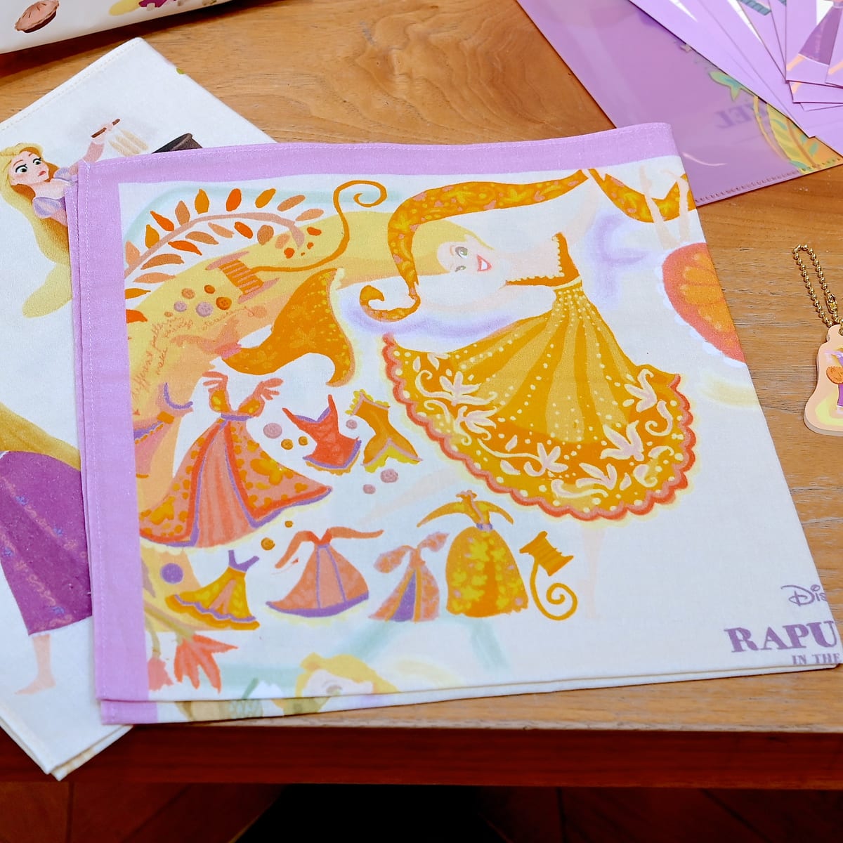 「ラプンツェル」が描いたカラフルなアートがつまったハンカチ。