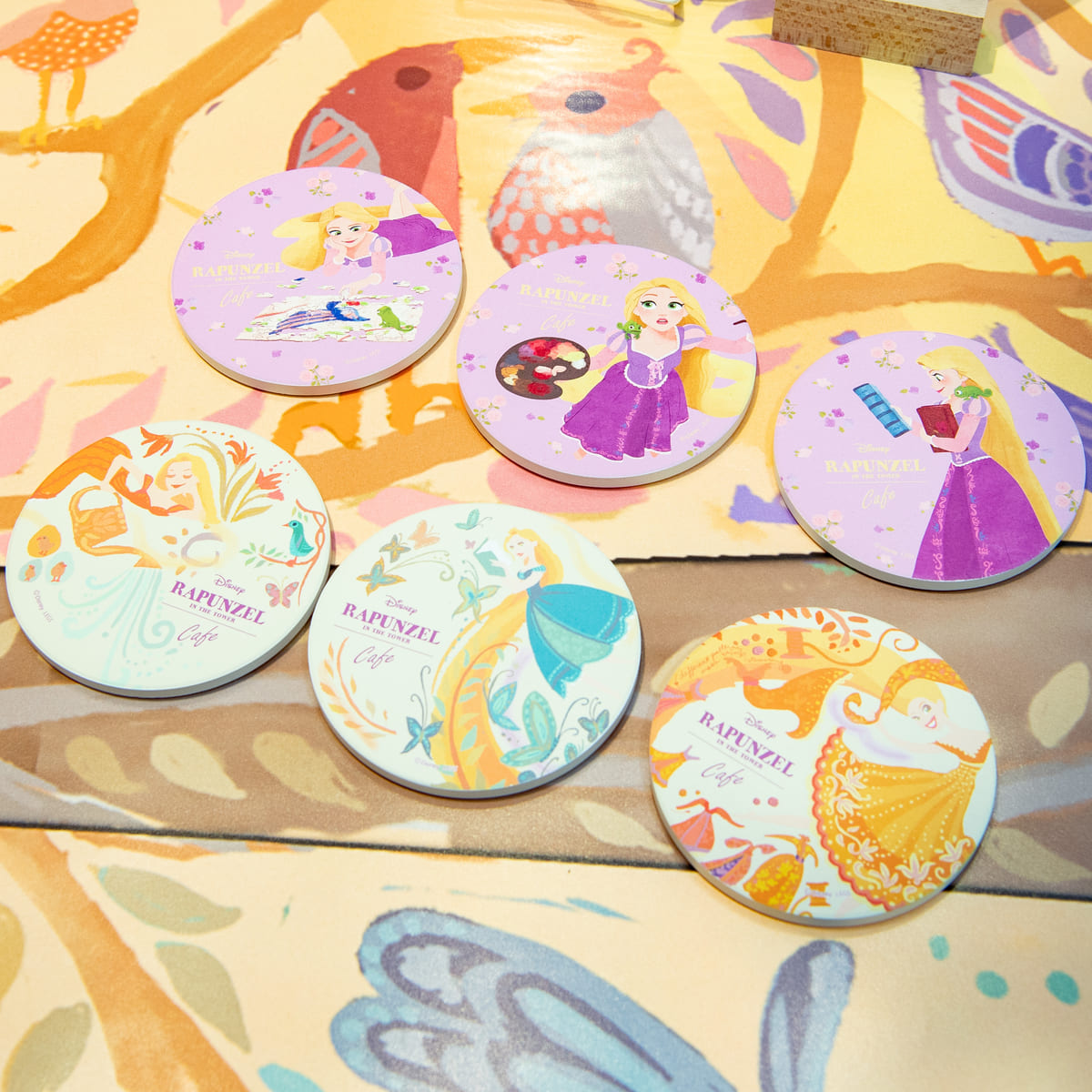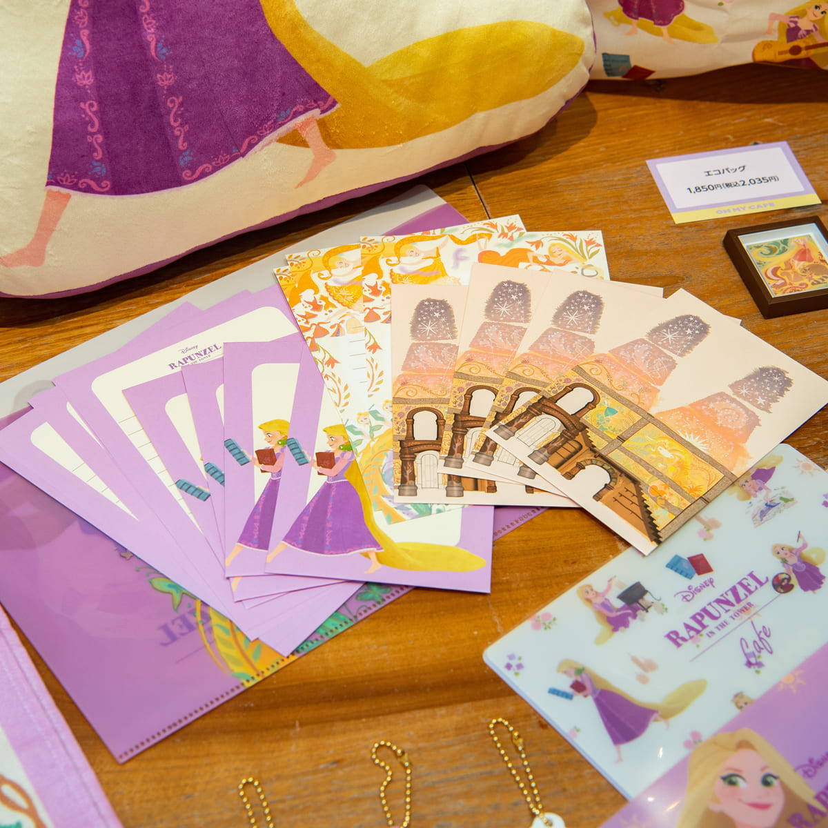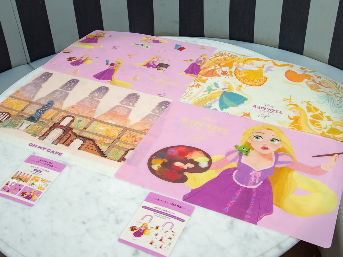 また、カフェオリジナルグッズは「ラプンツェル」が劇中で壁に描いた絵を使用した「in the tower」シリーズ、多彩な趣味を楽しんでいる「ラプンツェル」を描き起こした「ラプンツェル」シリーズが登場しています。