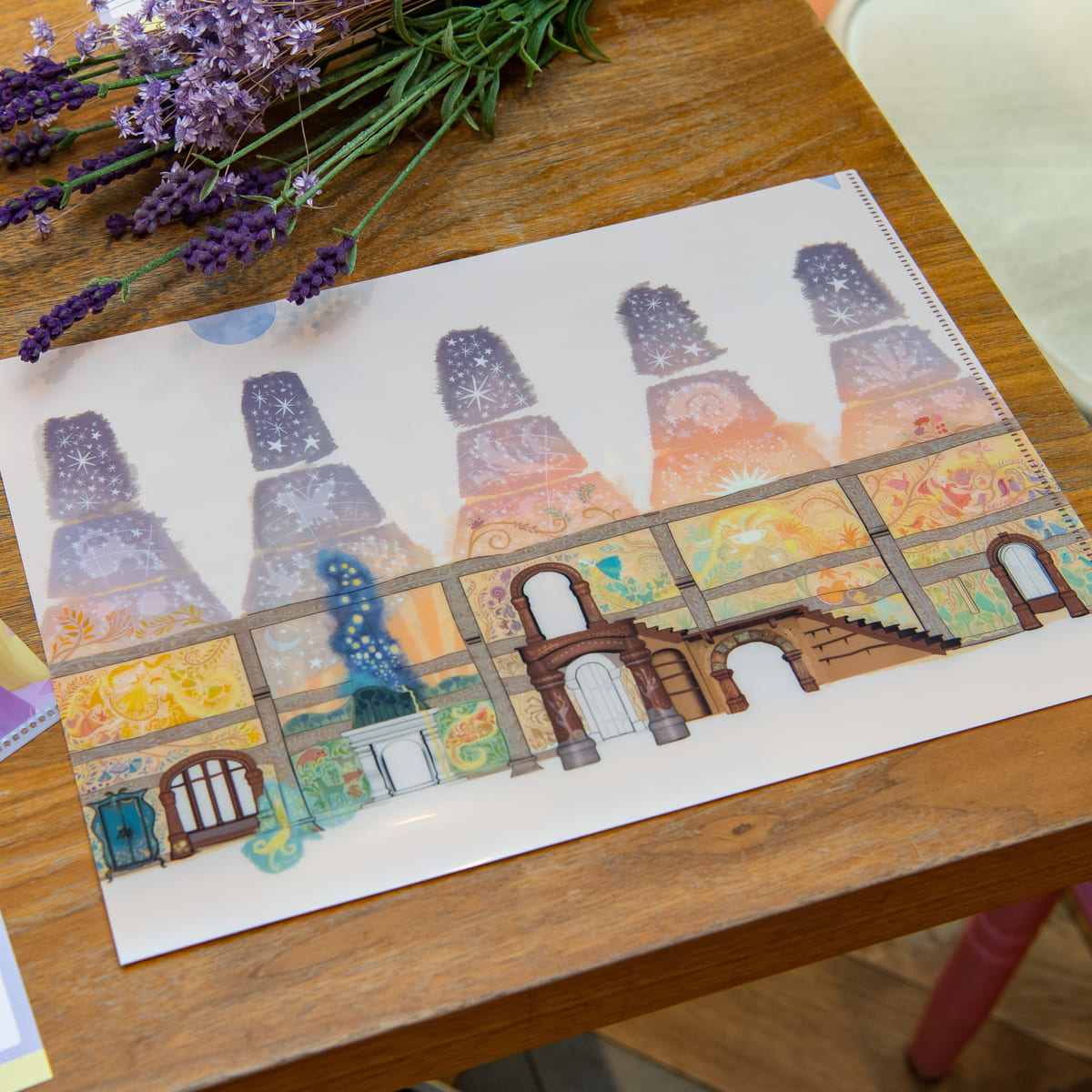 ラプンツェルが壁に描いたアートがデザインされたオシャレなクリアファイル。